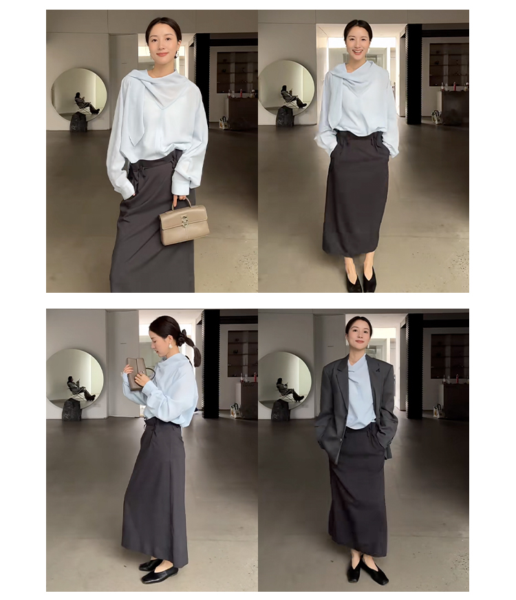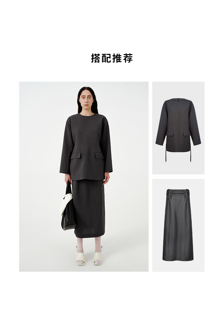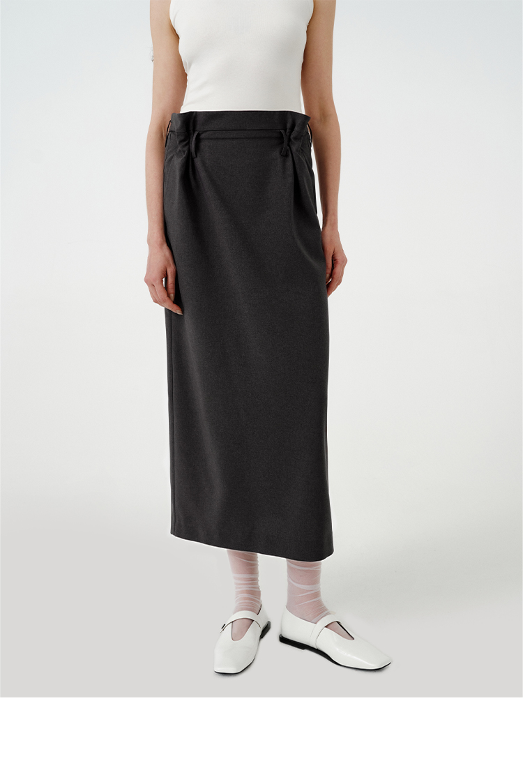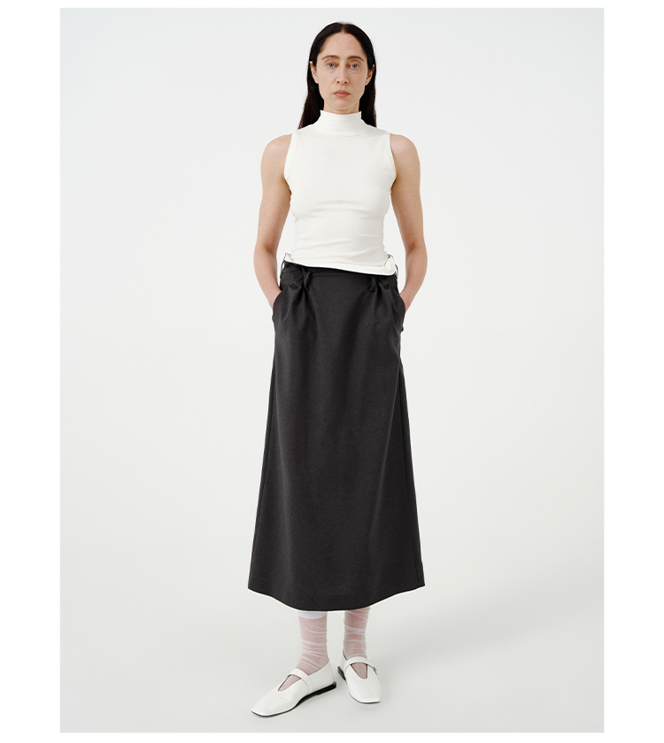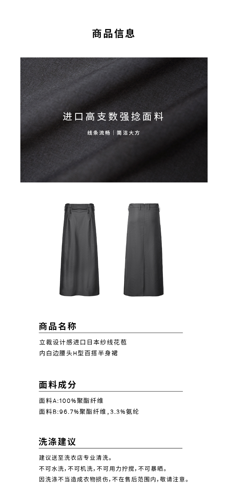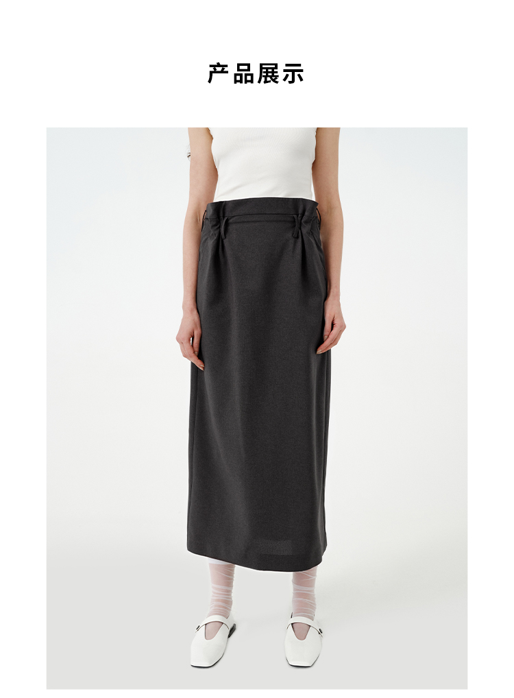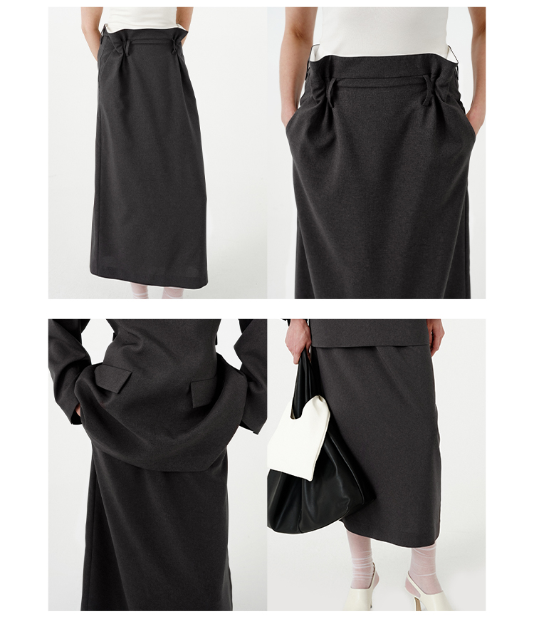 HIDEMI 【当当同款】立裁设计感进口日本纱线花苞内白边腰头H型百搭半身裙