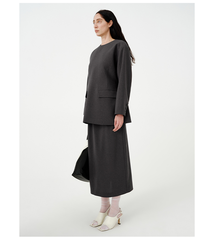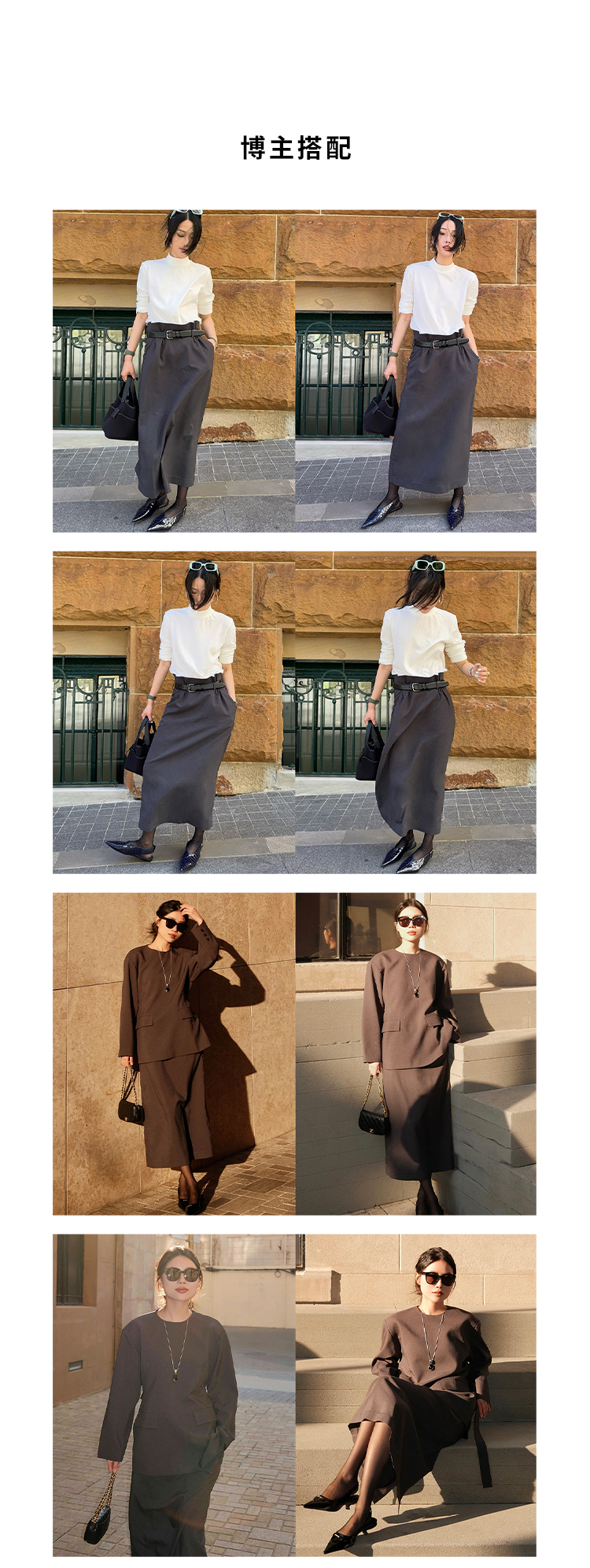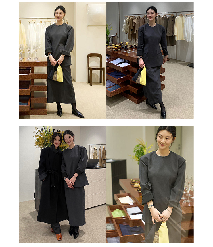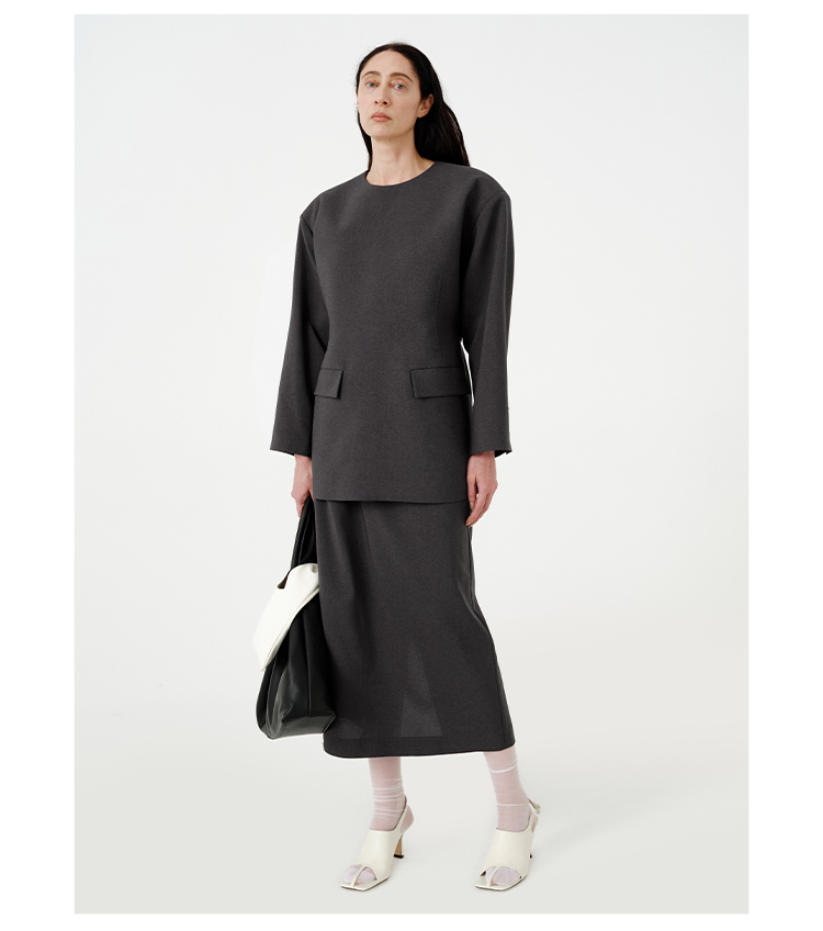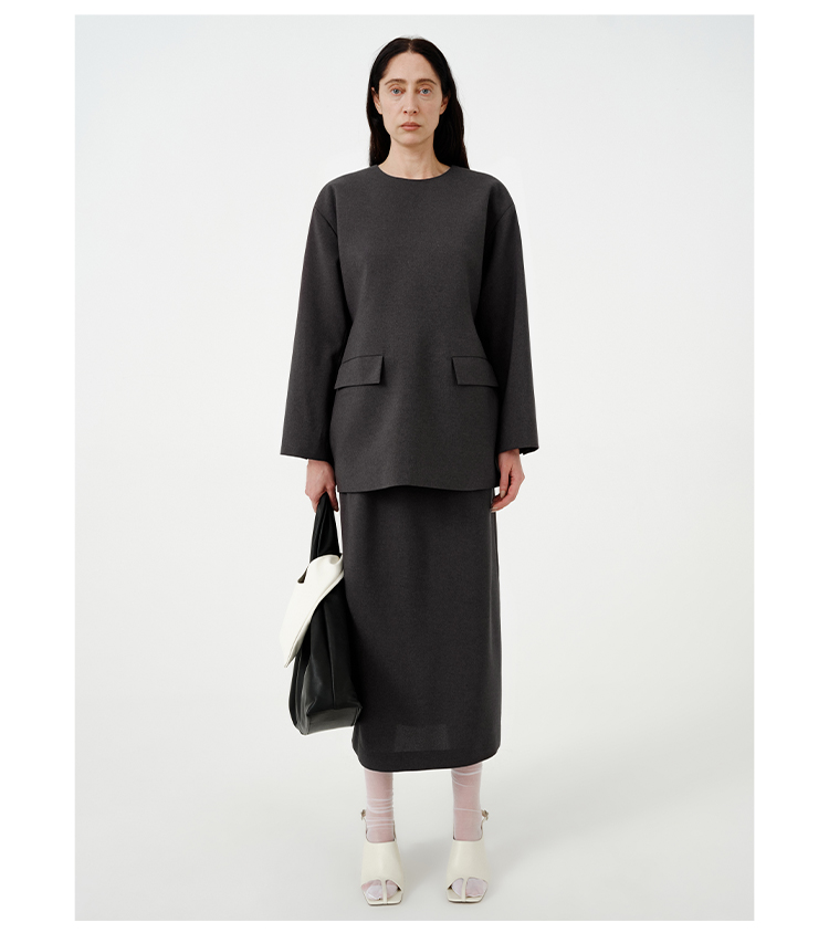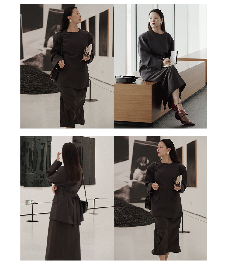 HIDEMI 【董生活同款】云朵系列亲肤柔软薄针织软糯三件套 背心/长袖上衣/百褶半身裙 灰色/巧克力色