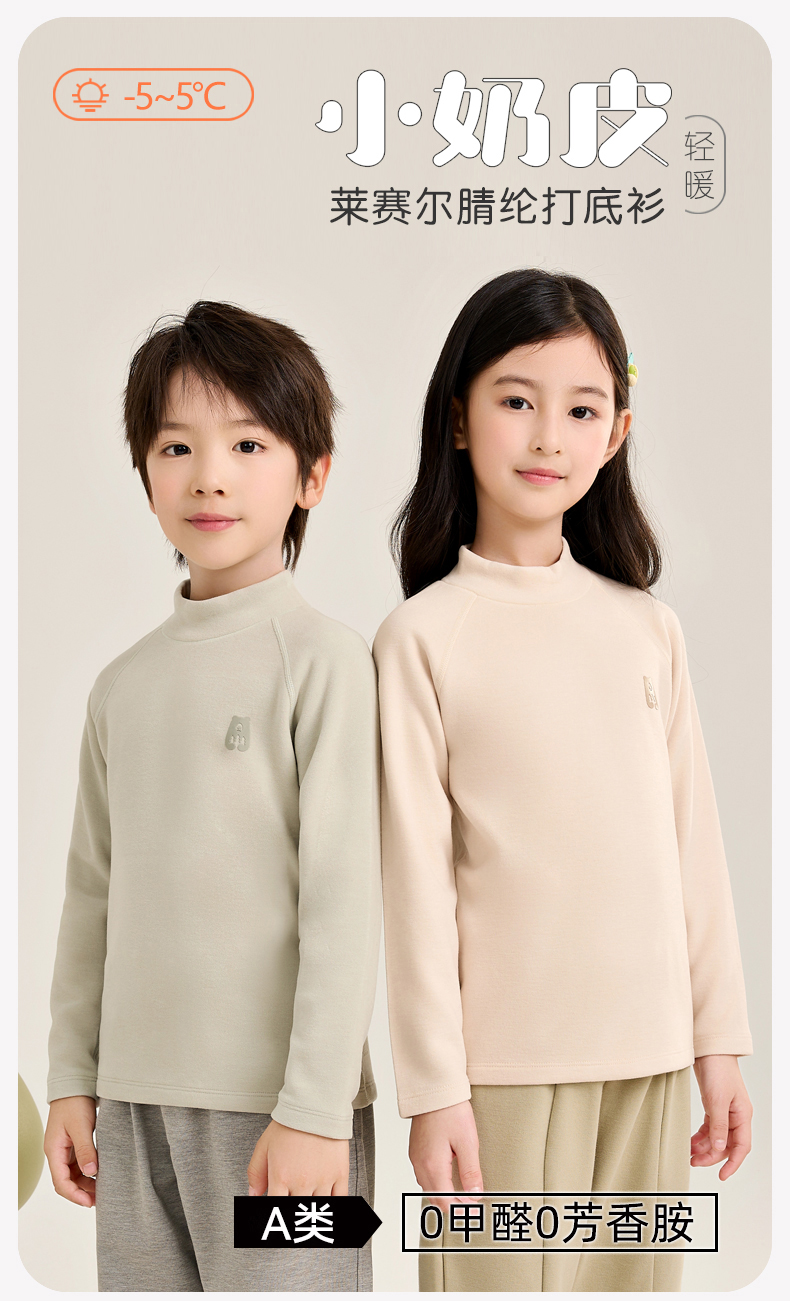 儿童保暖内衣a类男童德绒秋衣半高领秋冬季莱赛尔保暖打底衫女童