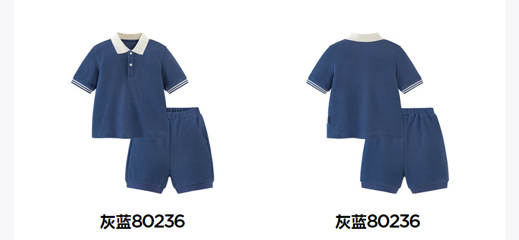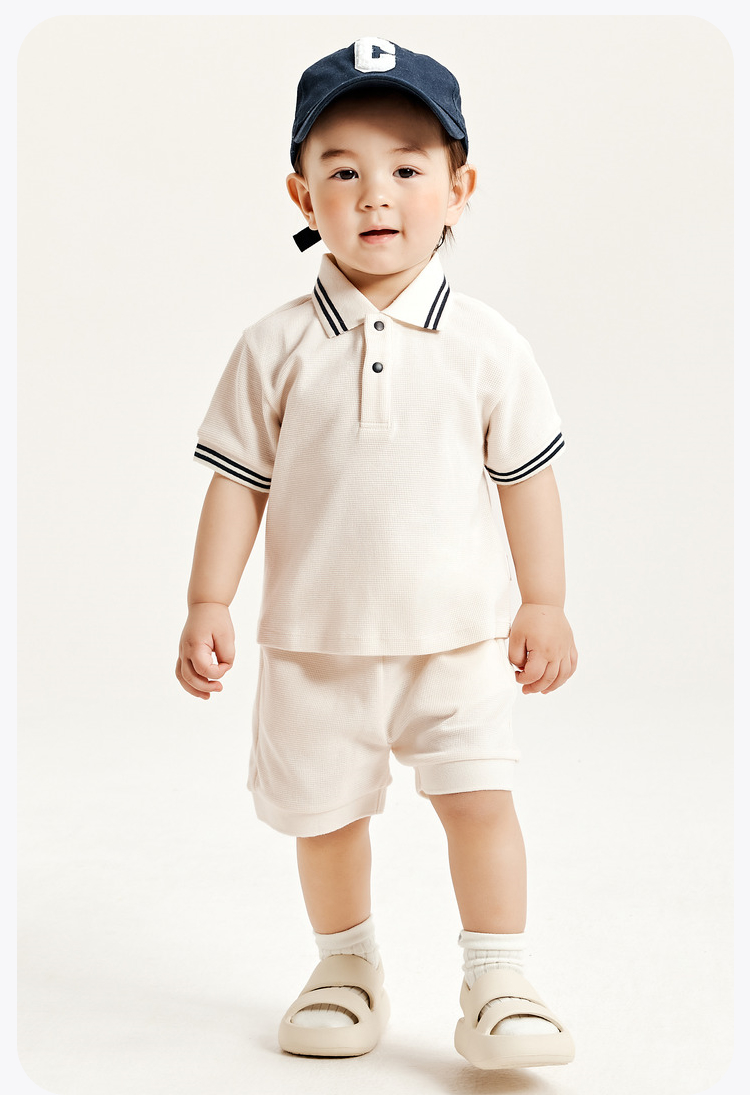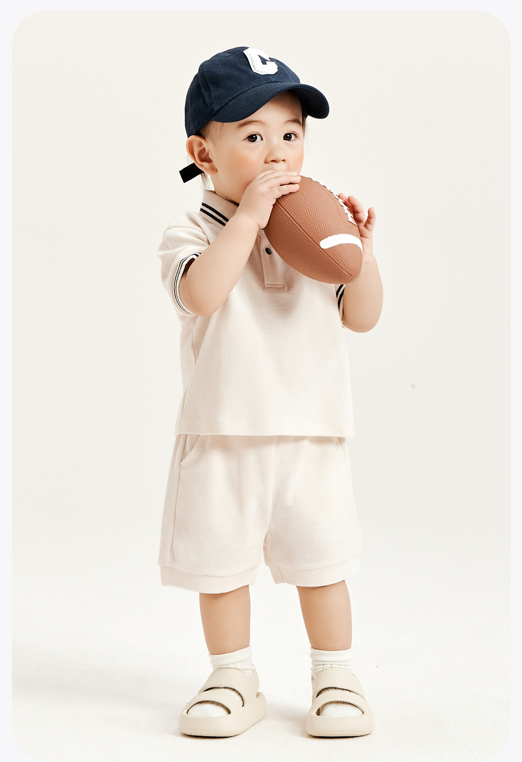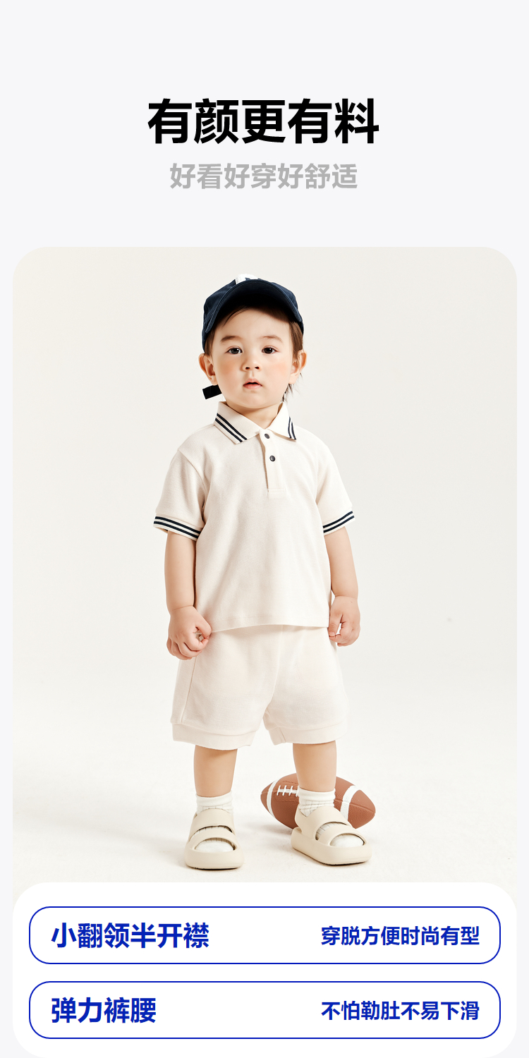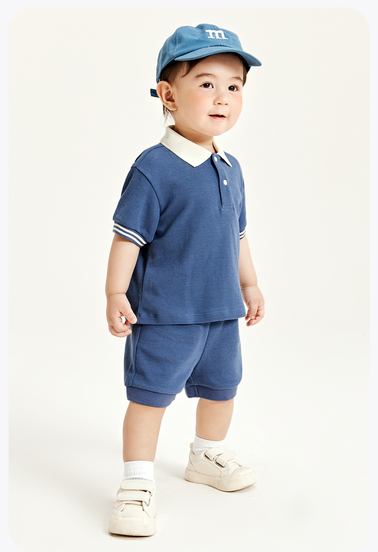 迷你巴拉男童女童儿童短袖两件套夏季学院风华夫格运动套装