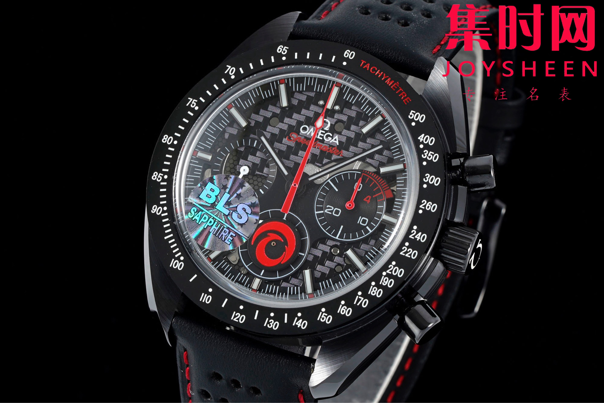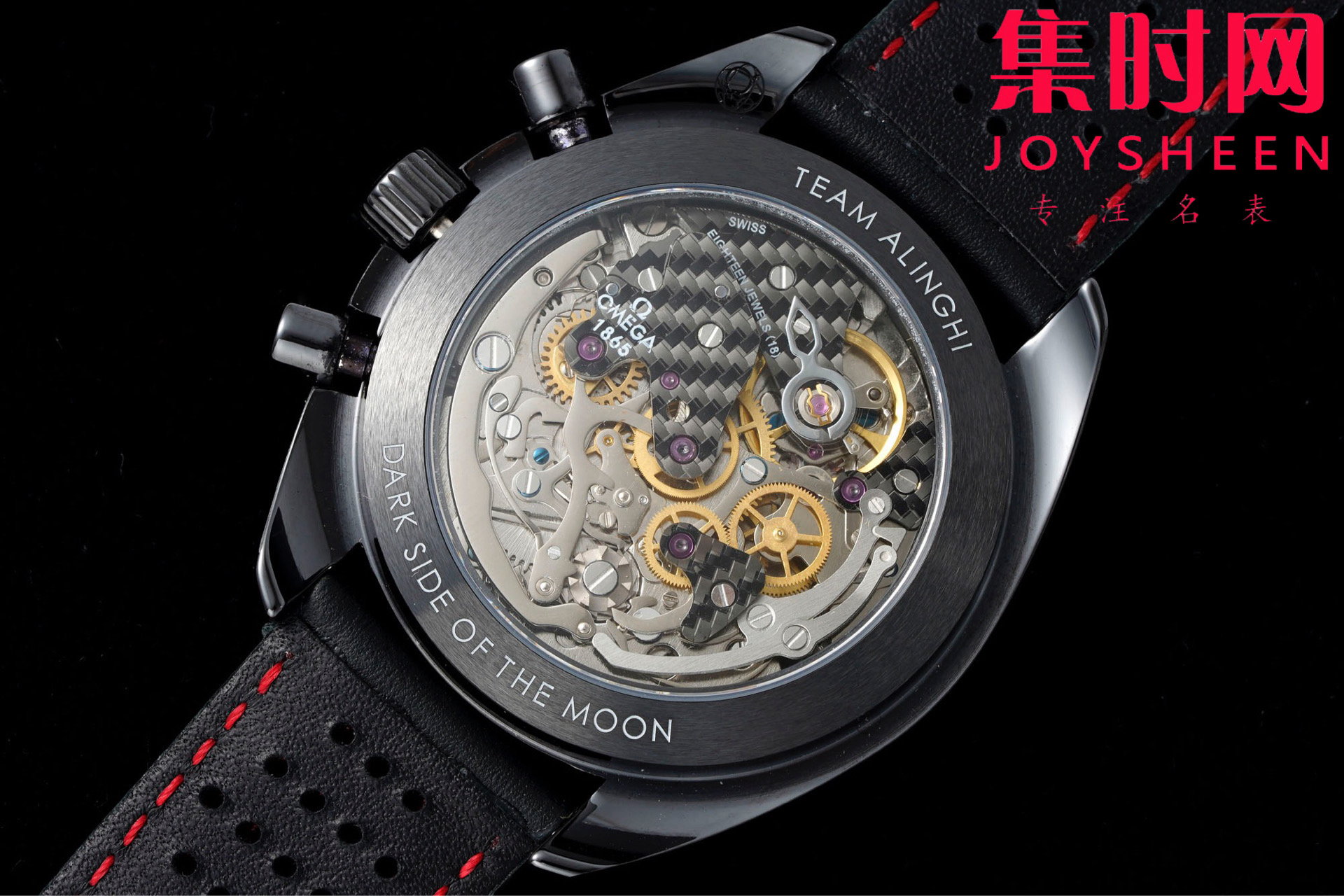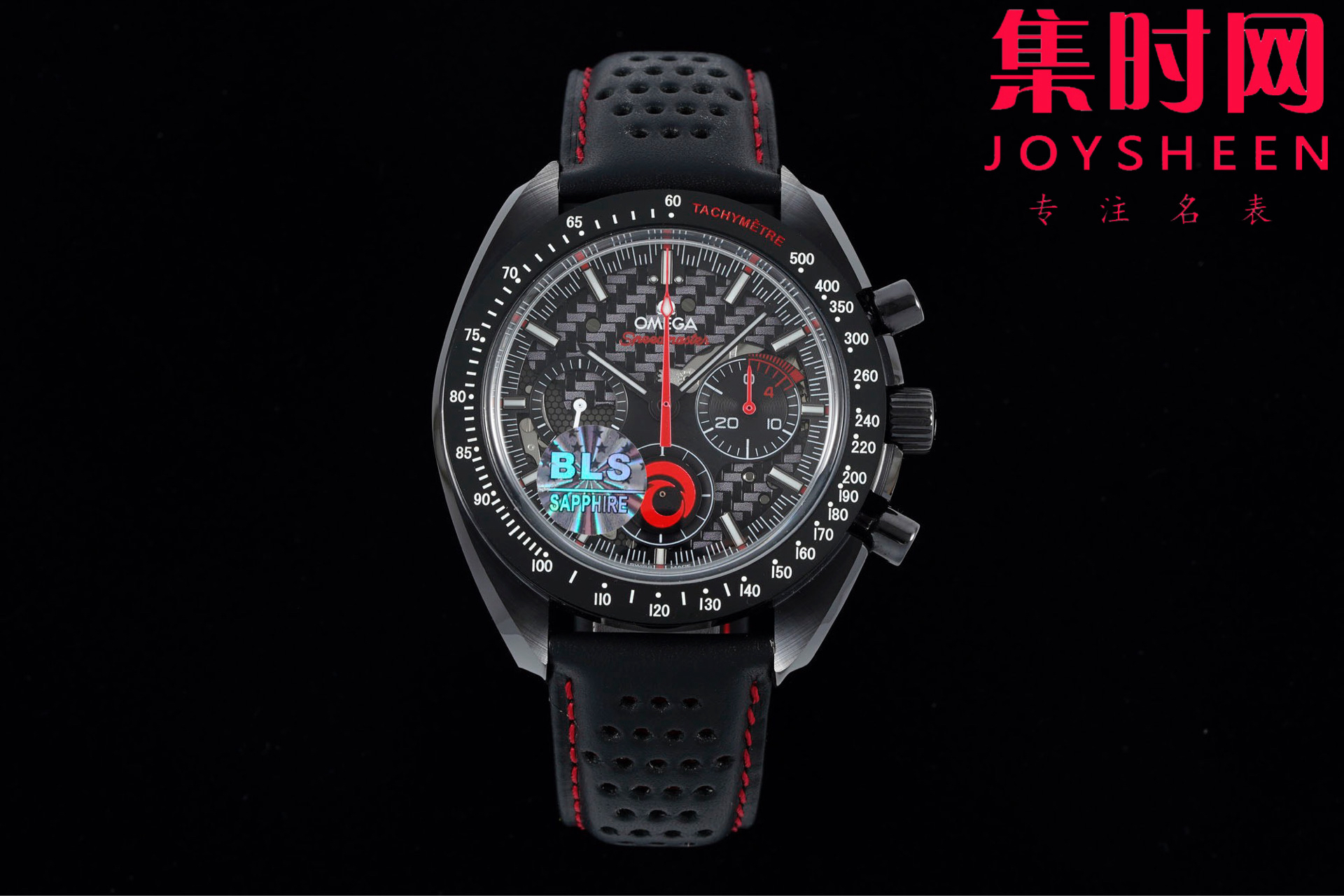 BLS欧米茄 超霸计时系列“月之暗面” 阿波罗8号 阿灵基帆船队陶瓷壳 男士腕表 搭载定制Cal.3869手动上链机械机芯,陶瓷是一种通过高温烧制而成的无机非金属物质。这一材质可以用于制造机械性能特殊的高密度腕表部件。陶瓷是消费者在选购腕表时备受青睐的材质之一,这得益于其瞩目而多样的色彩和特殊性能,陶瓷的重量比精钢轻两倍,耐磨、高抗划性、高生化惰性、低过敏性而且无磁性。这款腕表的表壳尺寸为44.25毫米,搭载经过黑化处理的机芯,并通过激光烧蚀技术在机芯夹板呈现月球表面的真实景象,旨在致敬超霸腕表为“阿波罗8号”任务做出的杰出贡献。透过黑色阳极氧化铝的镂空表盘,清晰可见人们从地球可以观测到的月之正面(近地面),表背则展示了仅有宇航员看到过的 “ 月之暗面 ”(远地面)。