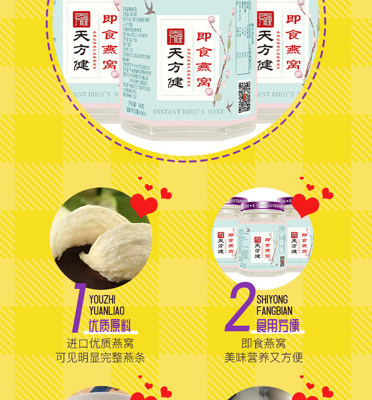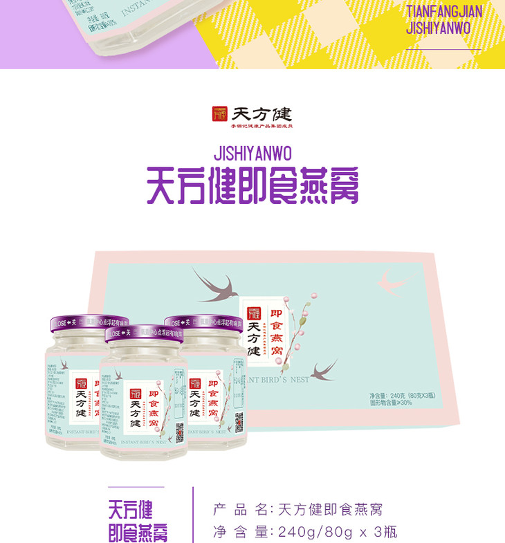 进店必买,好评如潮!即食燕窝240g(80g*3瓶),每一口都是燕窝,开罐即食