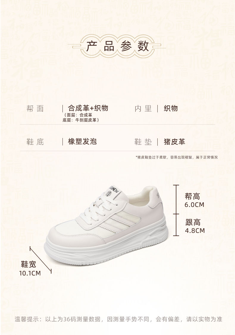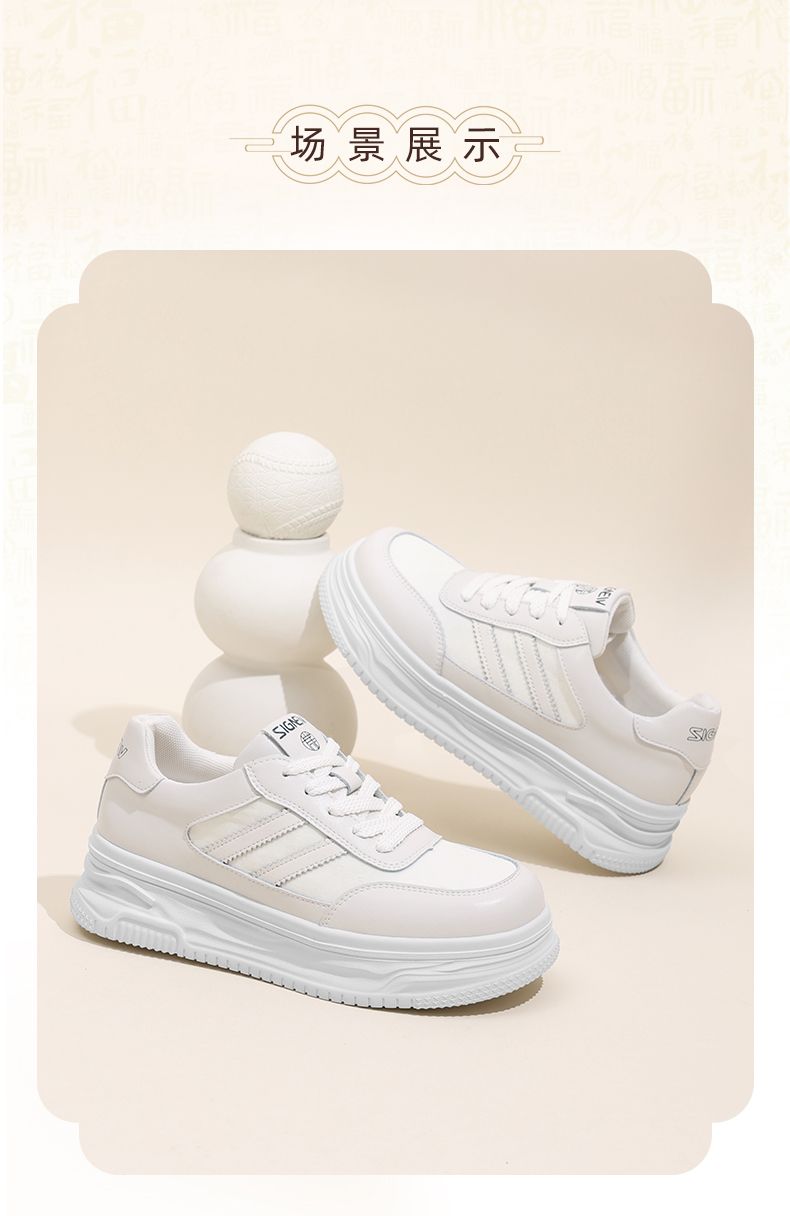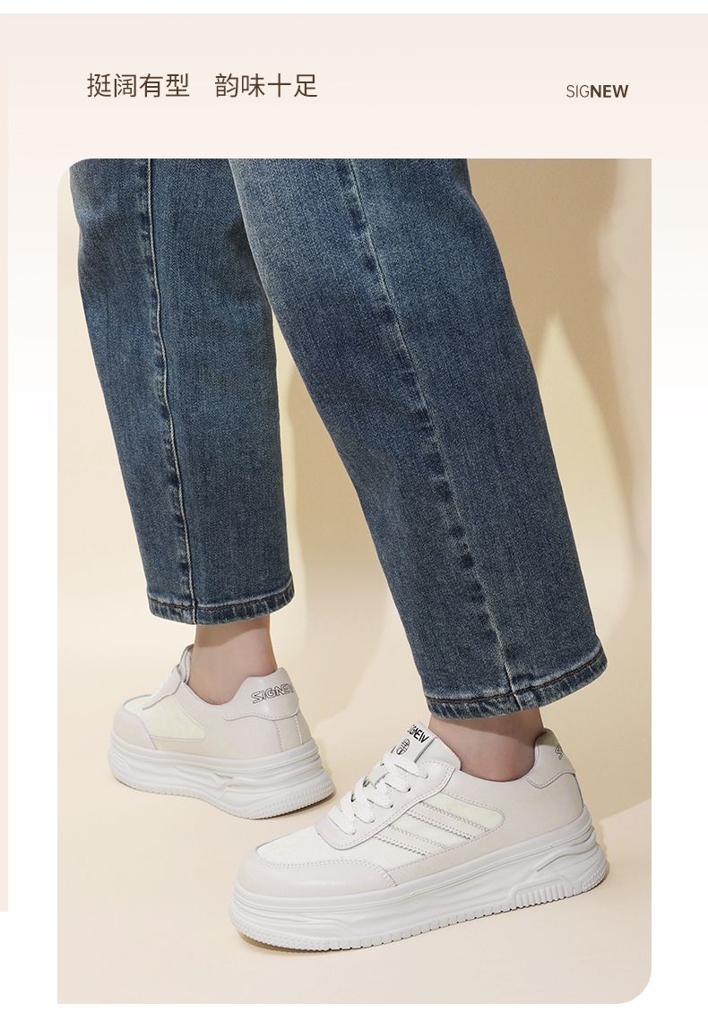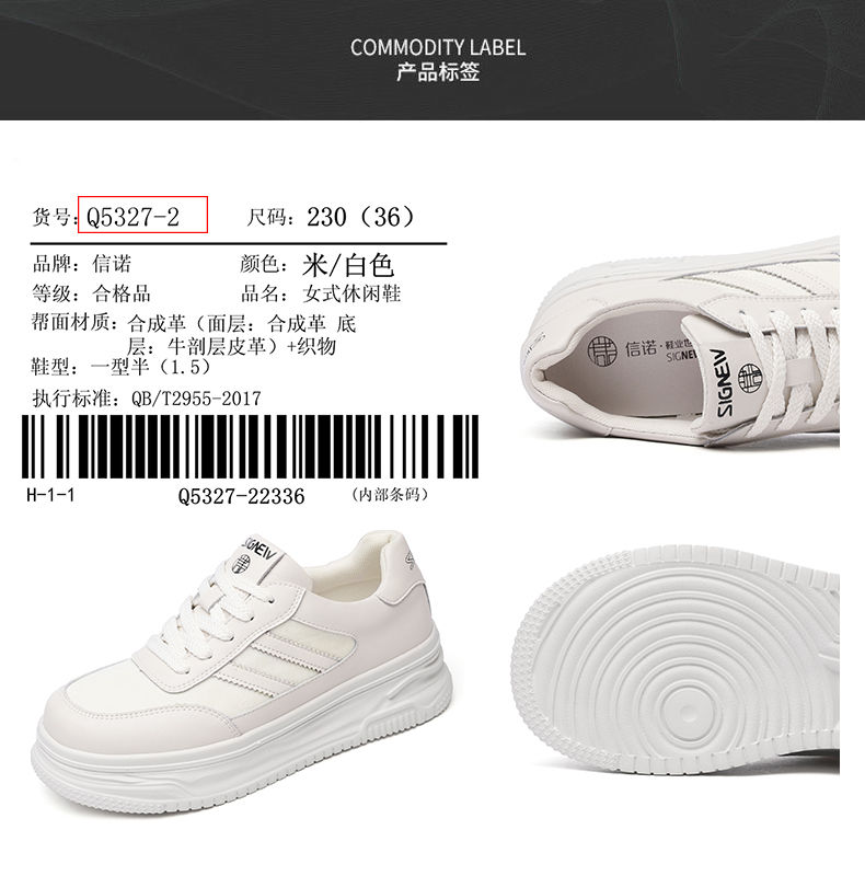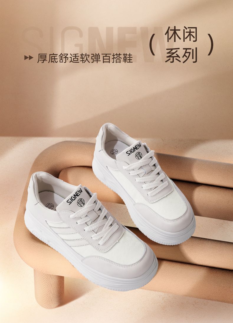 信诺新中式舒适女鞋2024新款秋季厚底休闲鞋小白鞋运动鞋女士板鞋Q5327-2