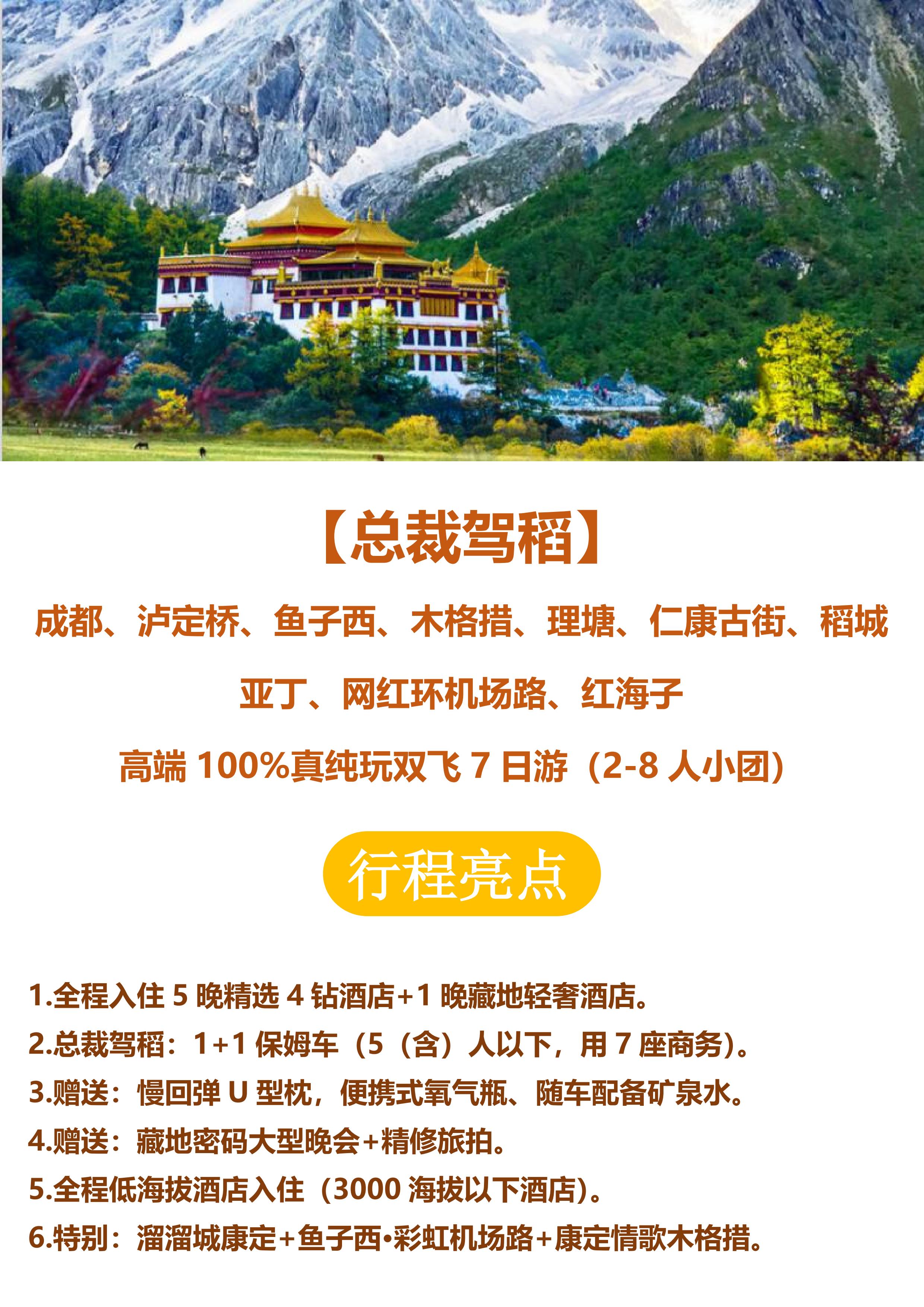 【总裁驾稻】高端100%真纯玩双飞7日游(2-8人小团)