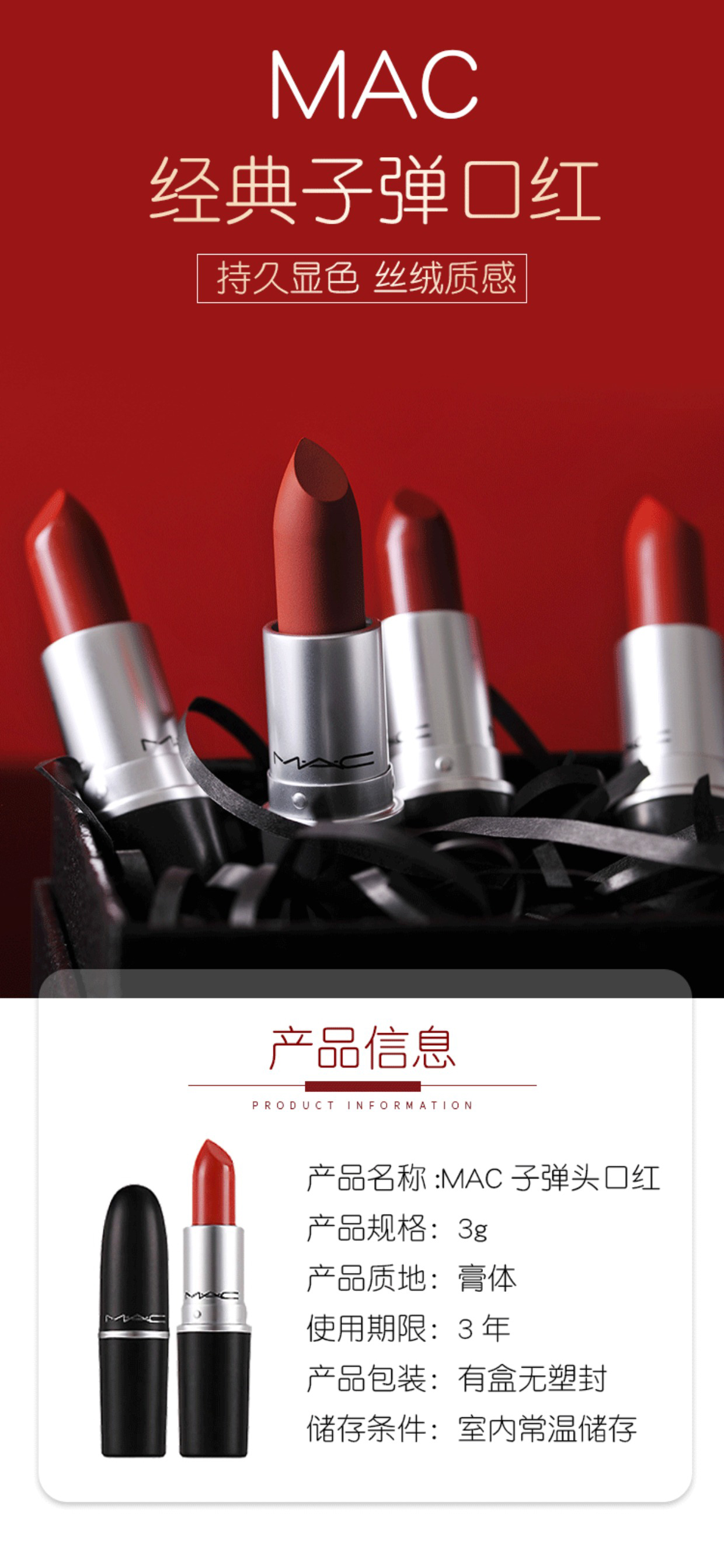 MAC/魅可大子弹头口红唇膏602 666