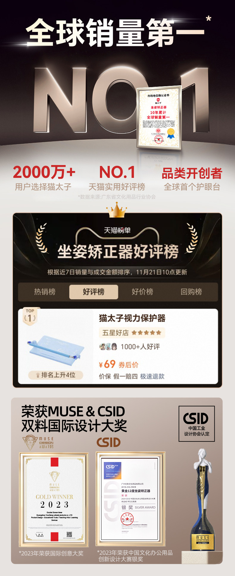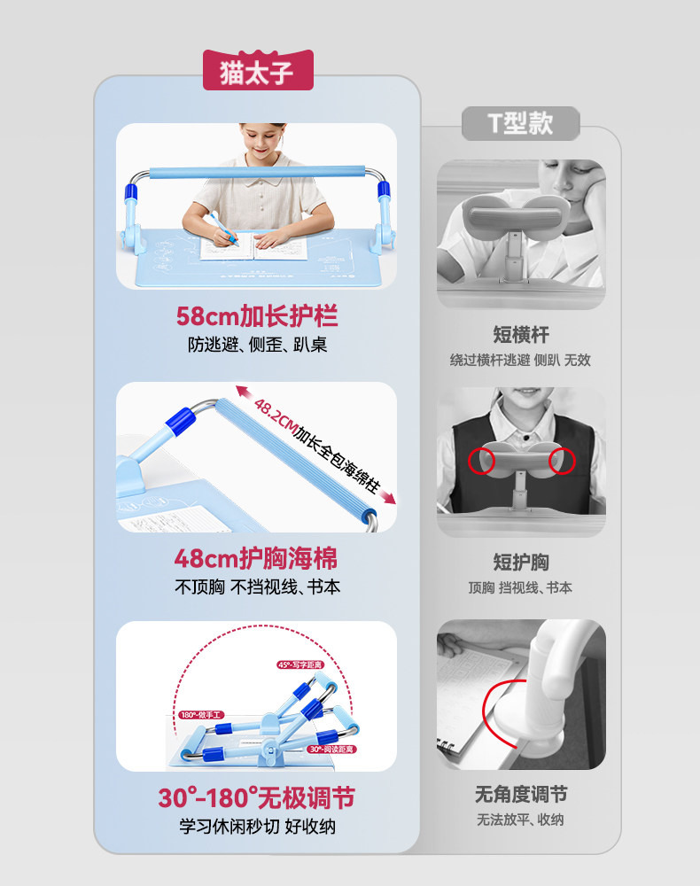 开学福利!【应采儿代言 新款第3代Plus款】猫太子护栏桌面坐姿矫正器加长杆防近视写字架小学生写作业写字防低头