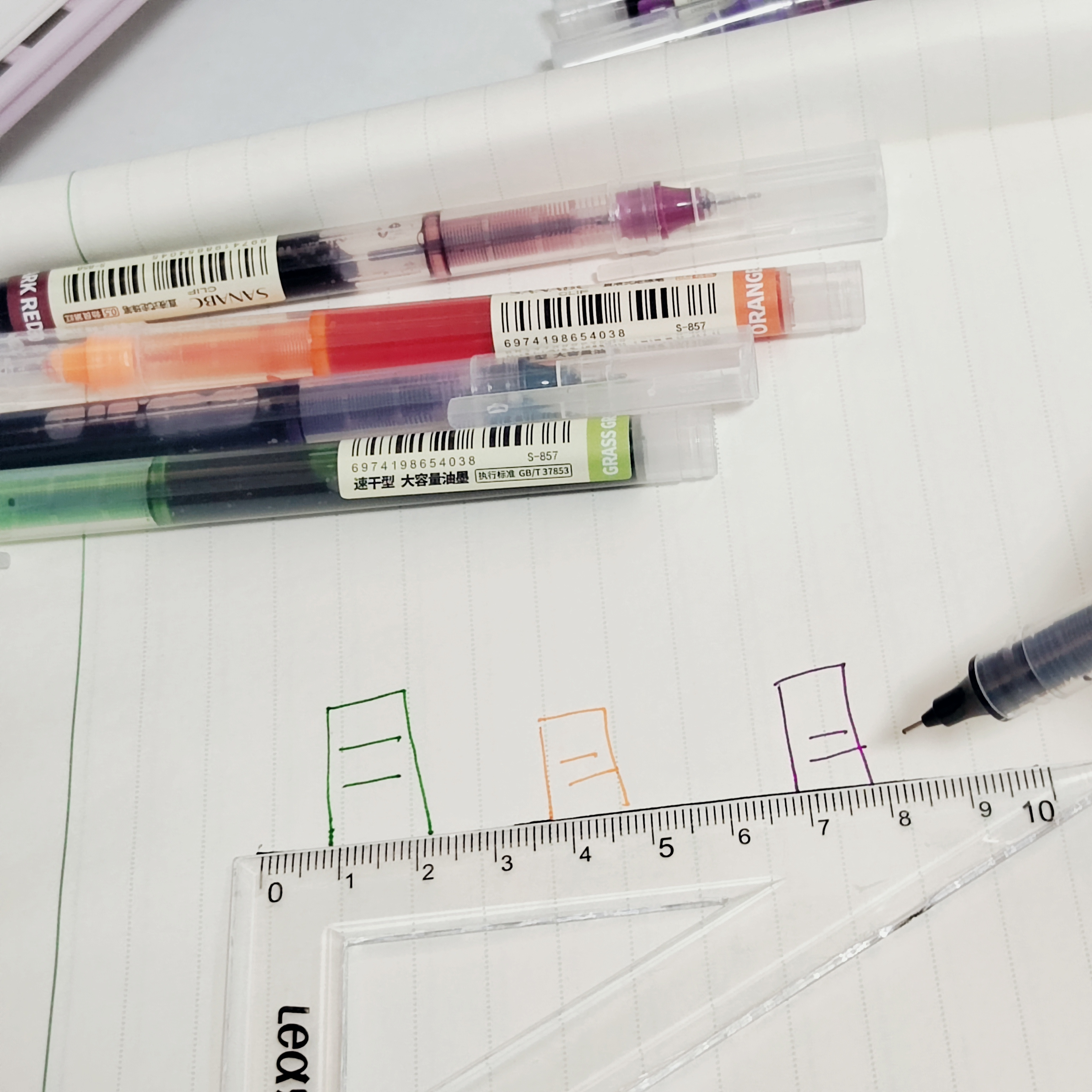 在文具店卖10元3支的直液速干笔❗