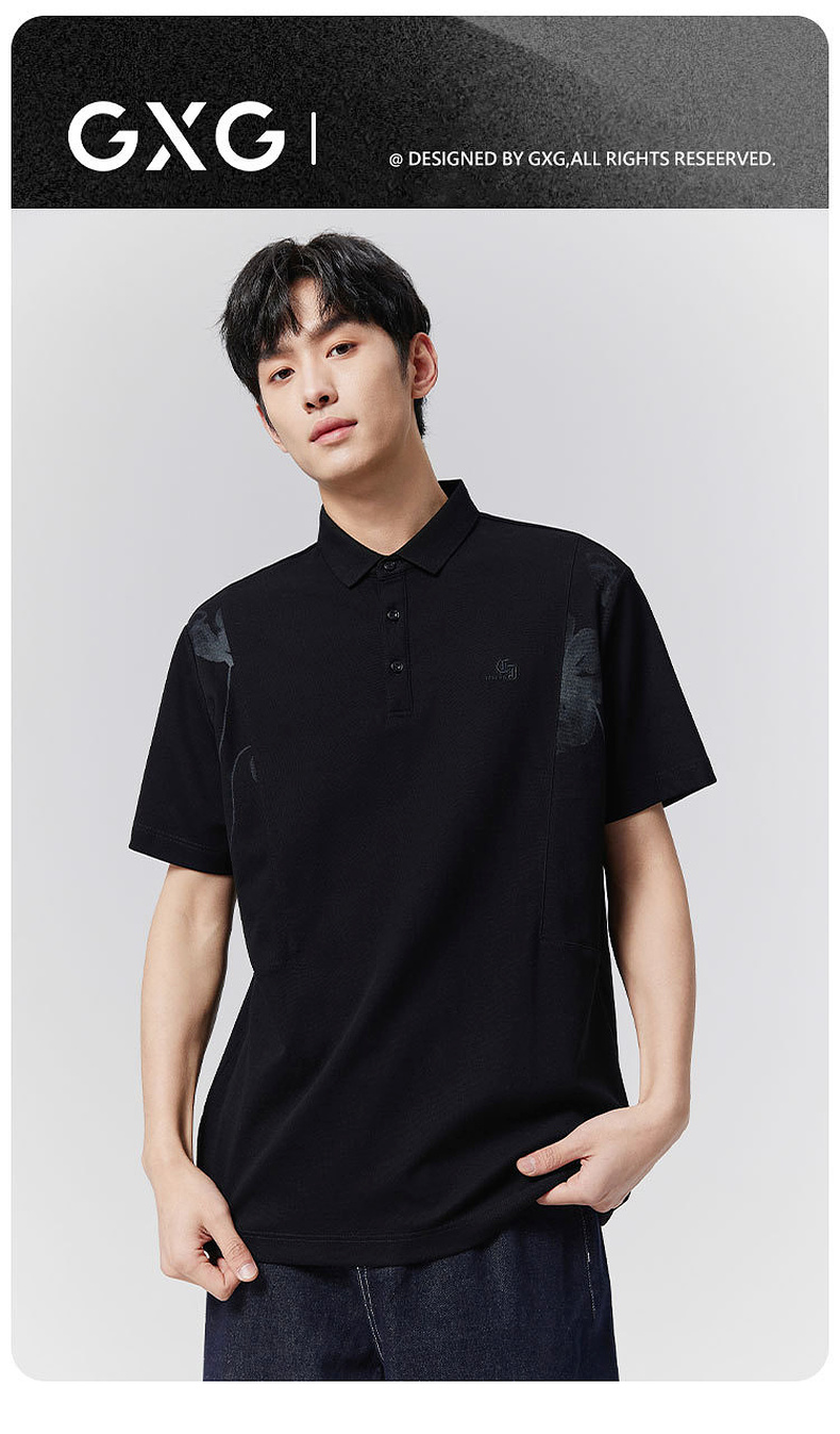 GXG男装【7A抗菌】25夏季时尚国风水墨画凉感透气男式翻领POLO衫K&C