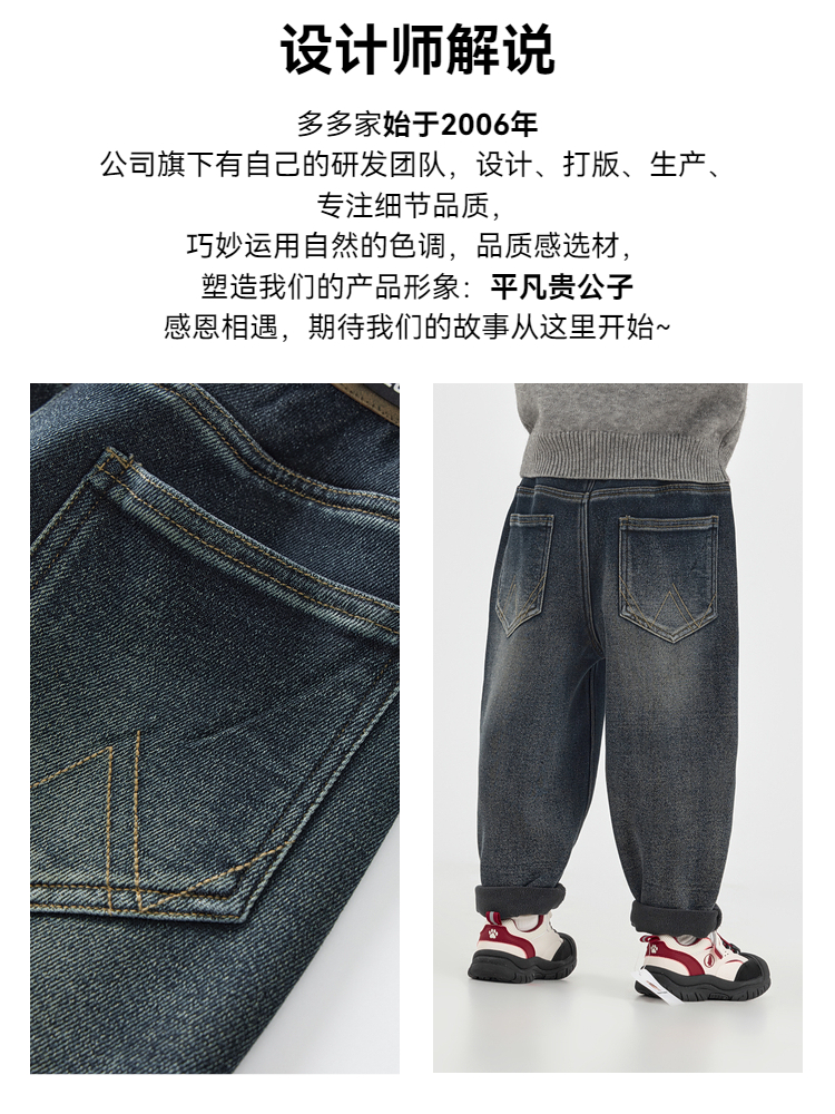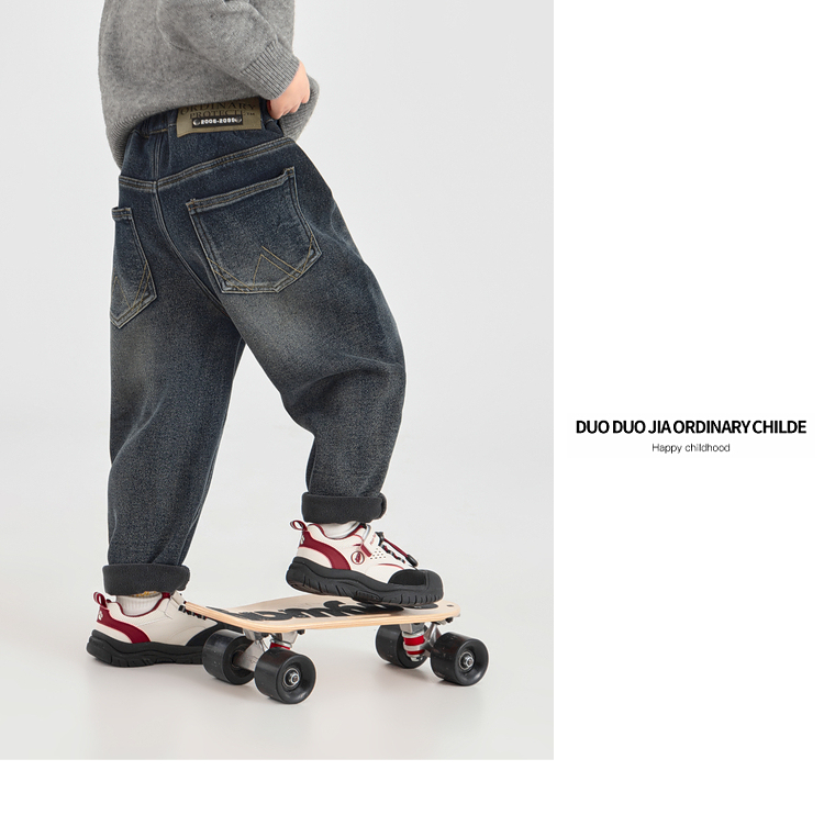 【件件底价,童装双倍积分】多多家男童加绒牛仔裤2025秋冬新款冬装儿童直筒保暖长裤子男孩潮11226
