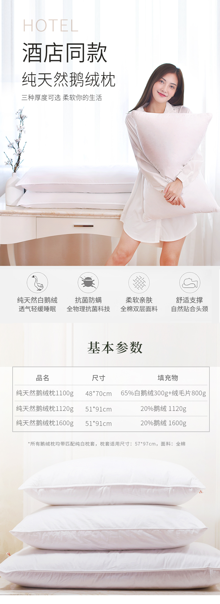 【枕中贵族】维也纳 鹅绒枕 三种厚度可选(单个装)