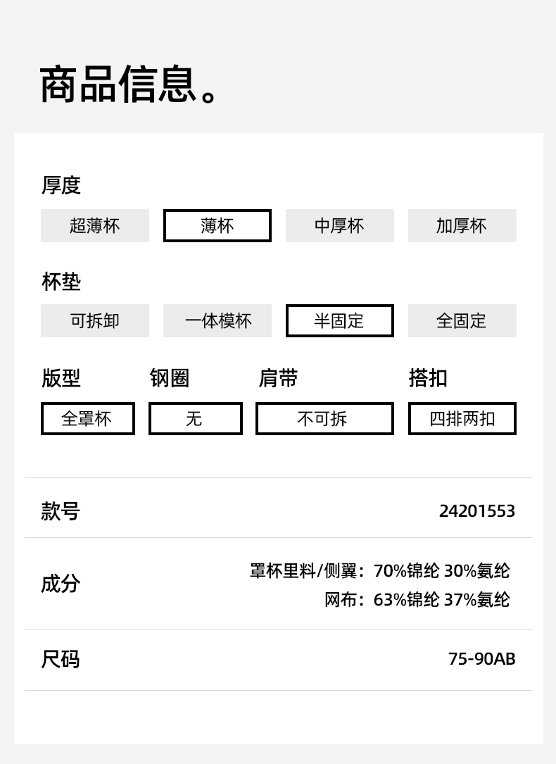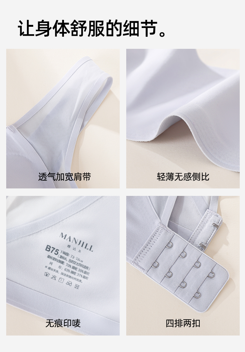 【多款可选】熳洁儿 无痕内衣棉感纱凉感自由无尺码文胸固定杯商场同款24201553/23201552/23701552