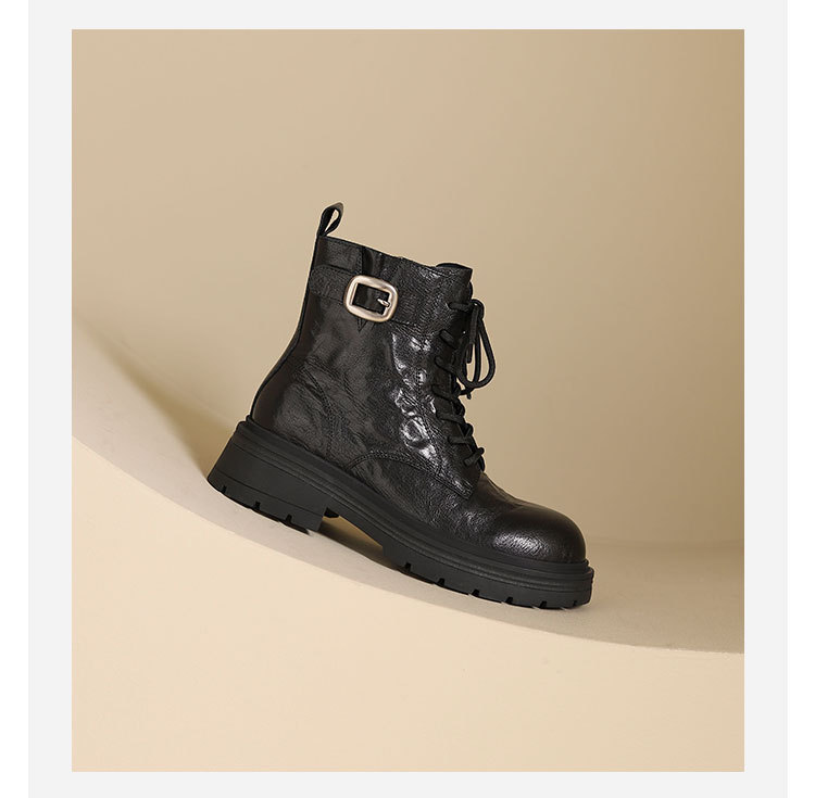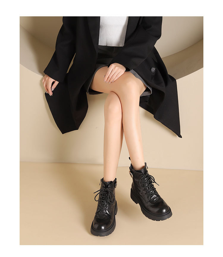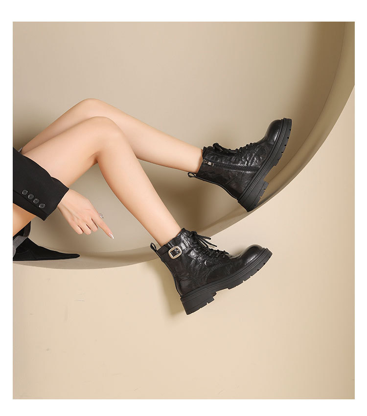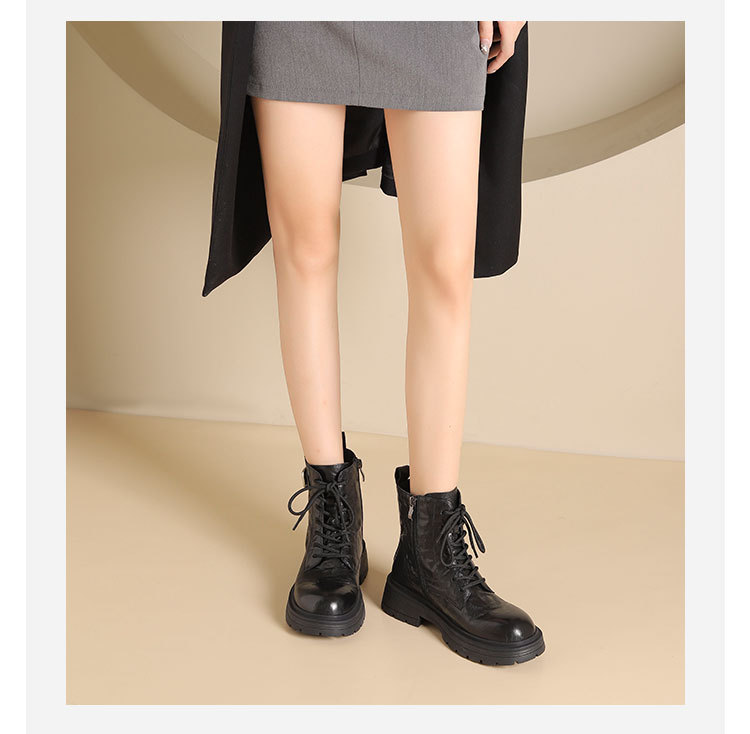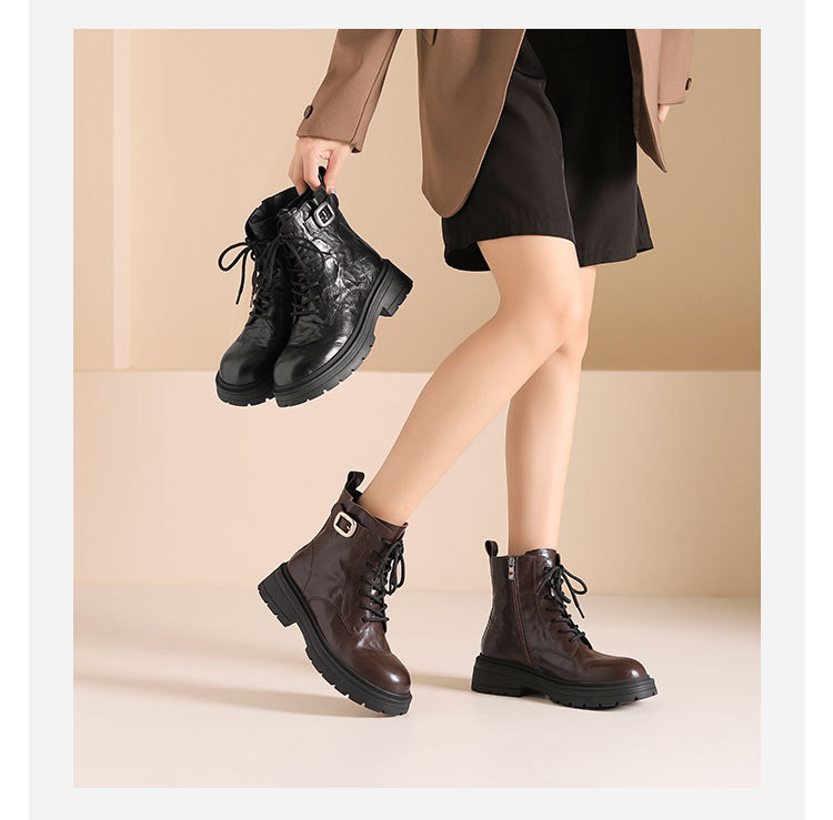 westory2024年秋冬新款优雅风厚底平跟百搭短靴马丁靴S24DS84861