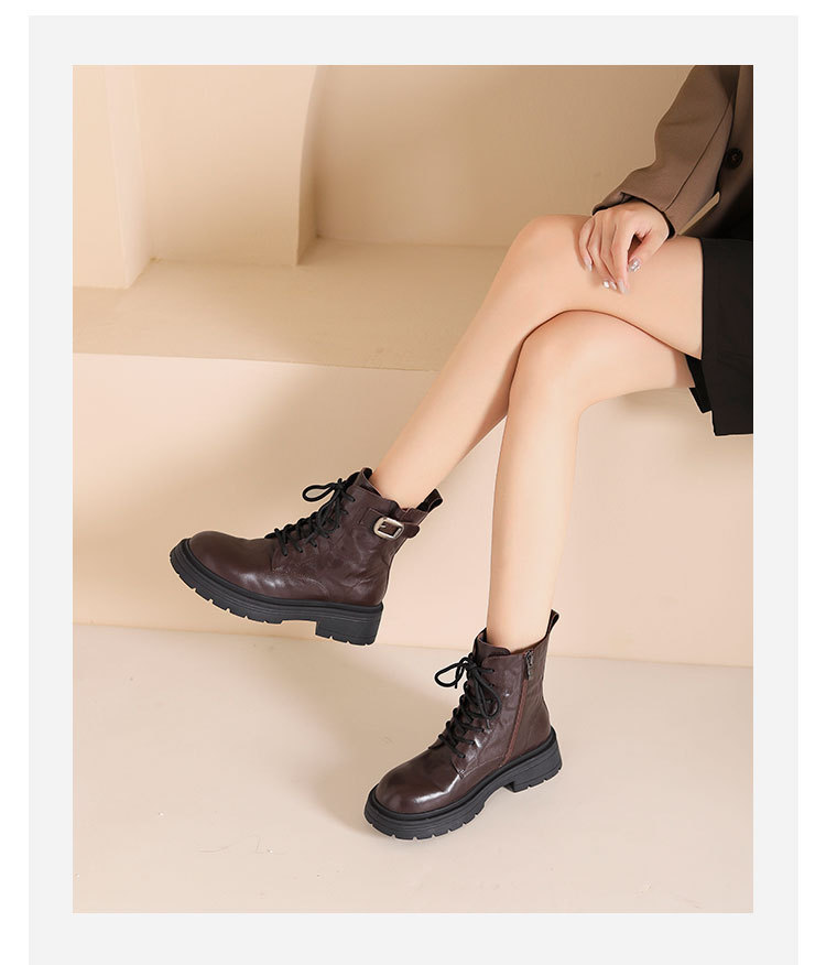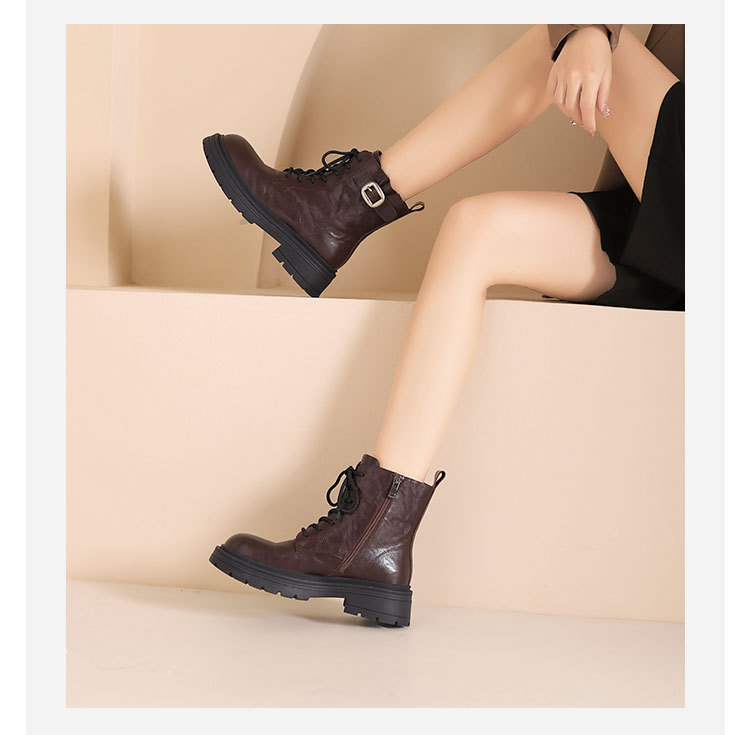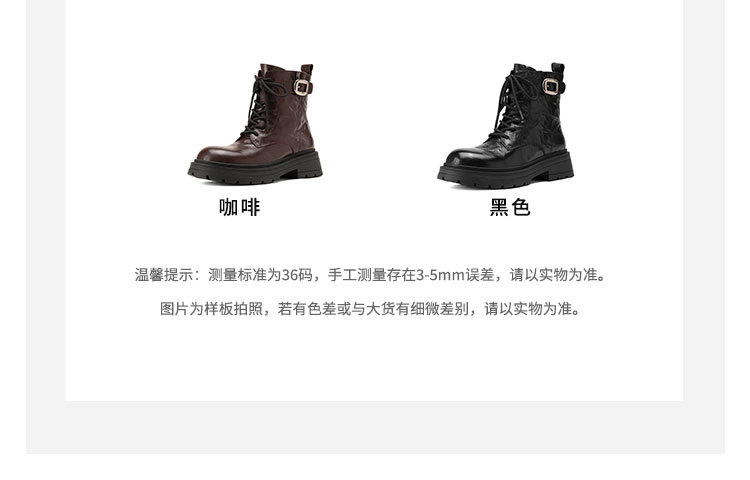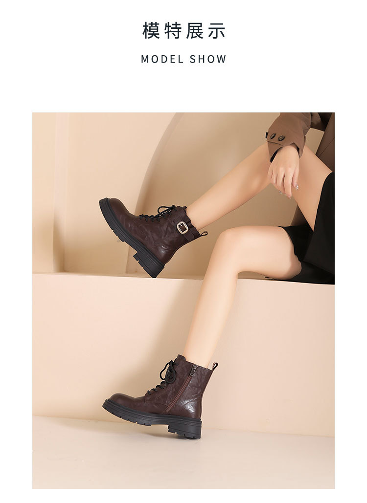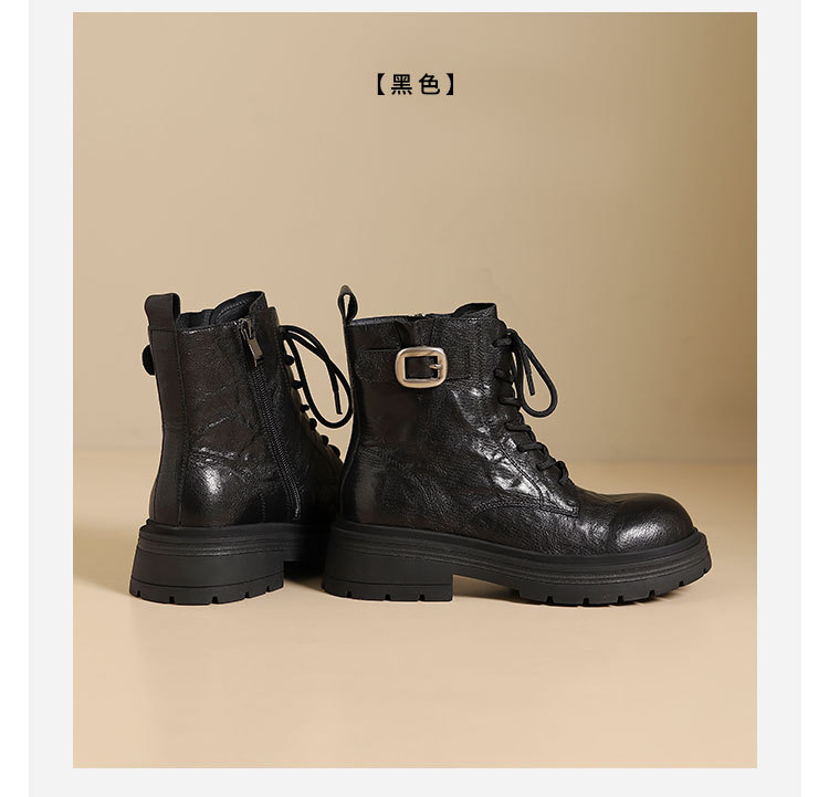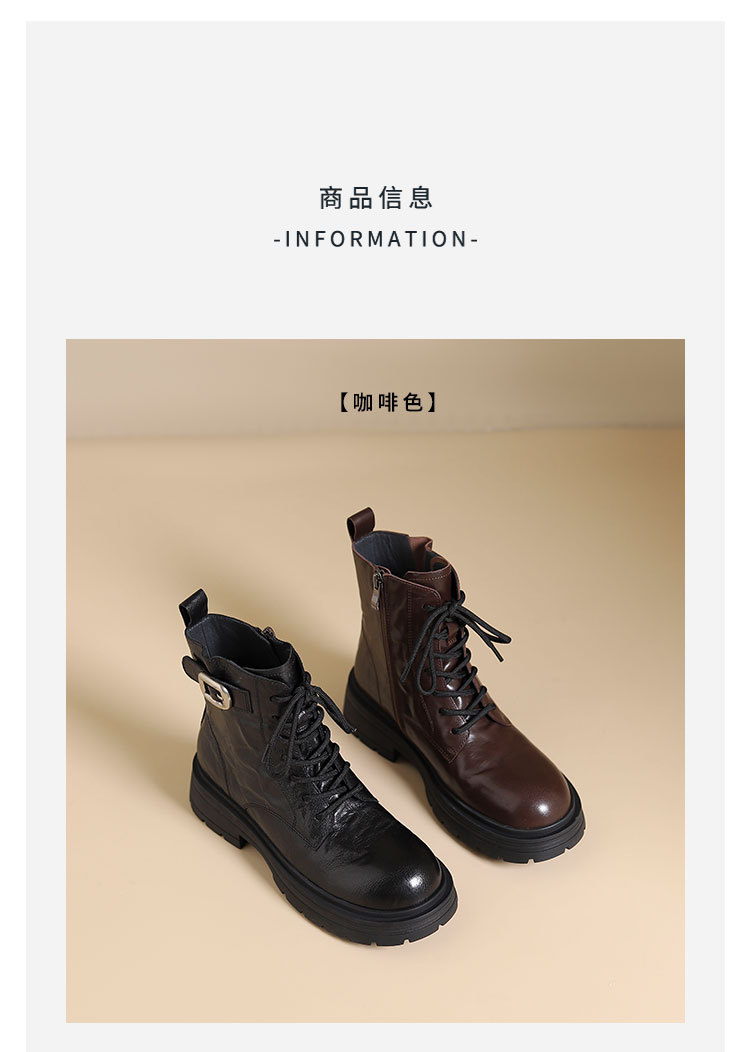 westory2024年秋冬新款优雅风厚底平跟百搭短靴马丁靴S24DS84861