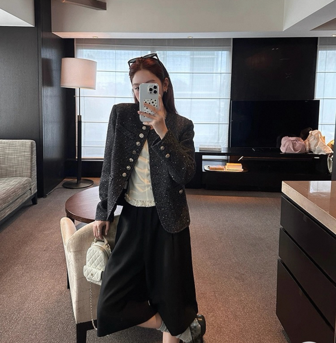 上身松弛感满满,显高级,还炒鸡显瘦~