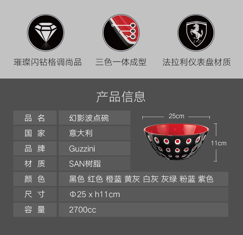 利快意大利进口创意小吃碗幻影波点碗 2700cc
