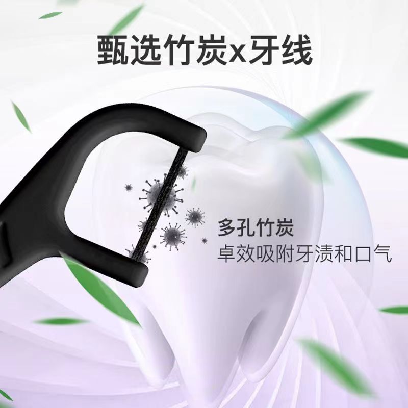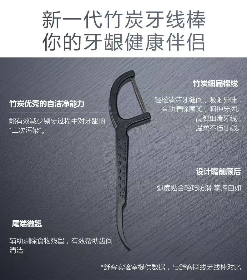 舒客专业洁齿牙线棒(竹炭深洁)50支装-1099