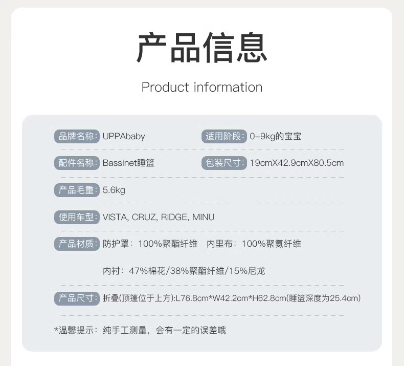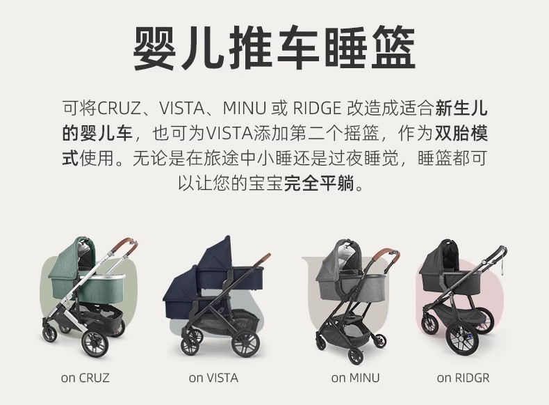 美国UPPAbaby Vista/Cruz/Minu/Ridge 婴儿车专用睡篮 推车配件