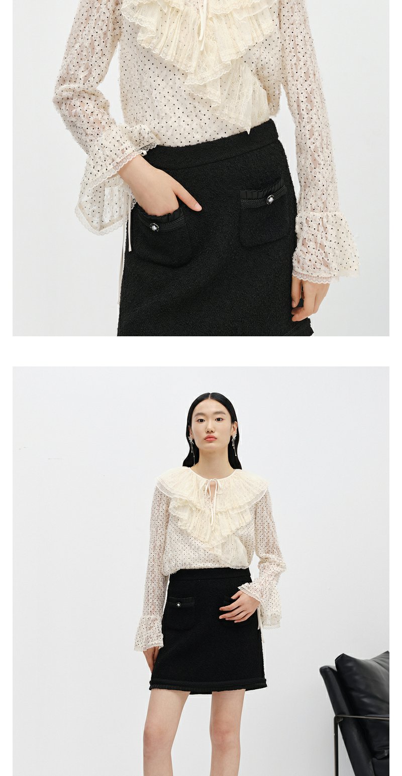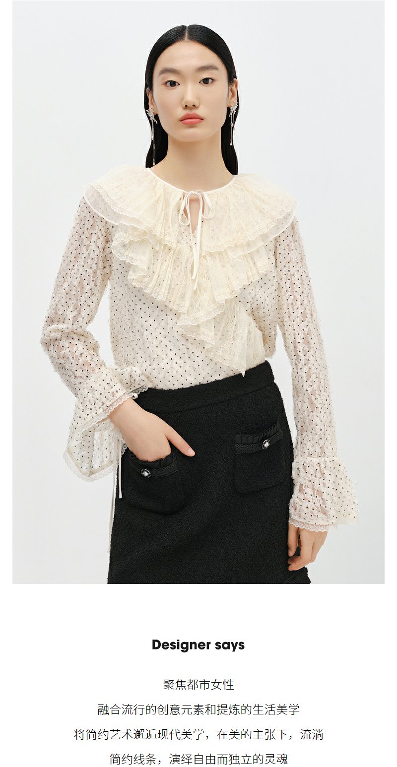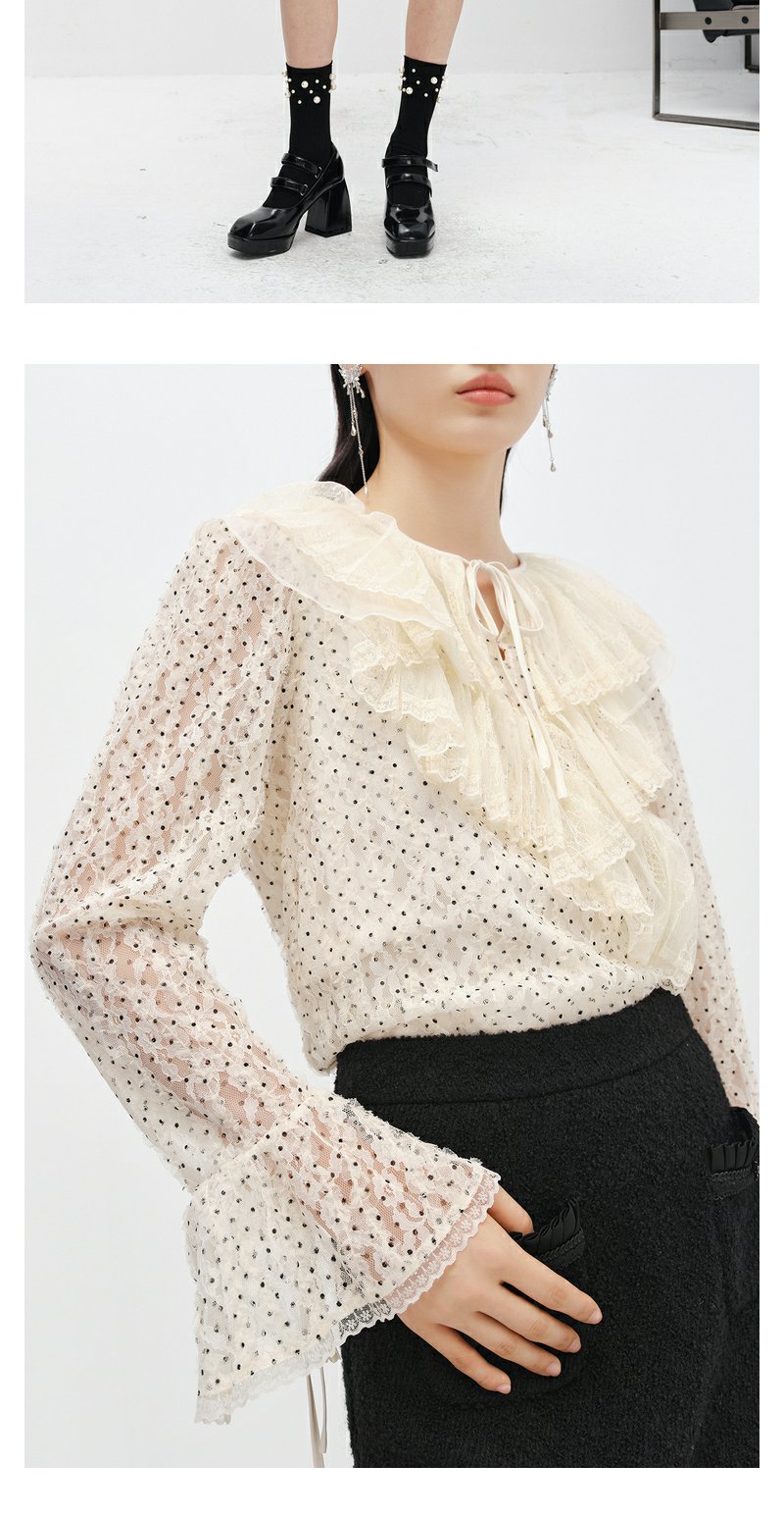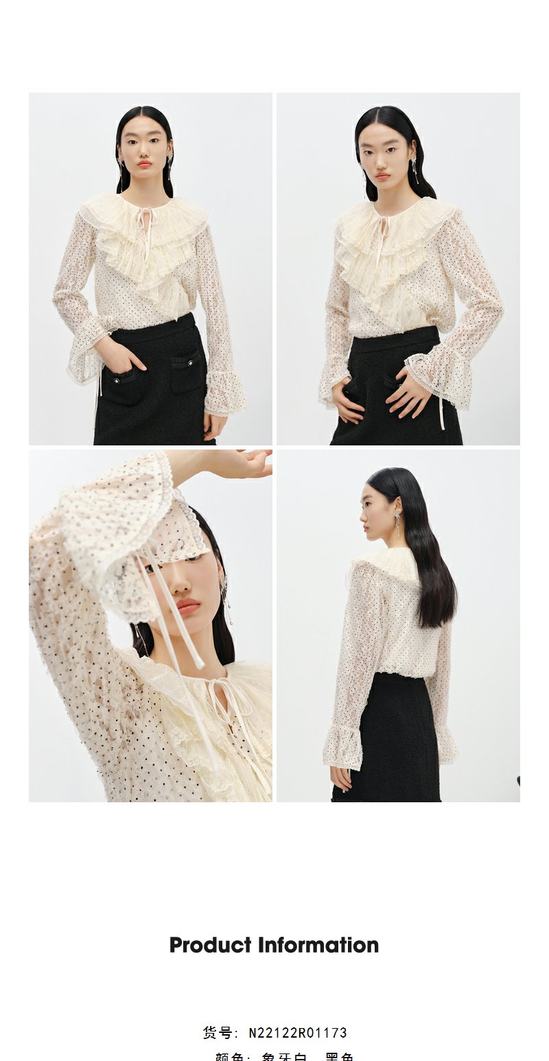 NEELLY纳俪商场同款冬季新款波点衬衫女可爱娃娃领套头上衣喇叭袖N22122R01173