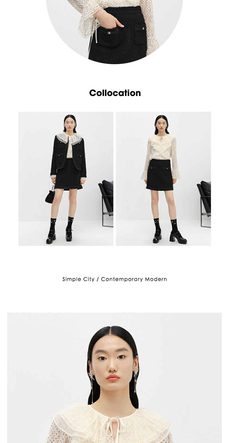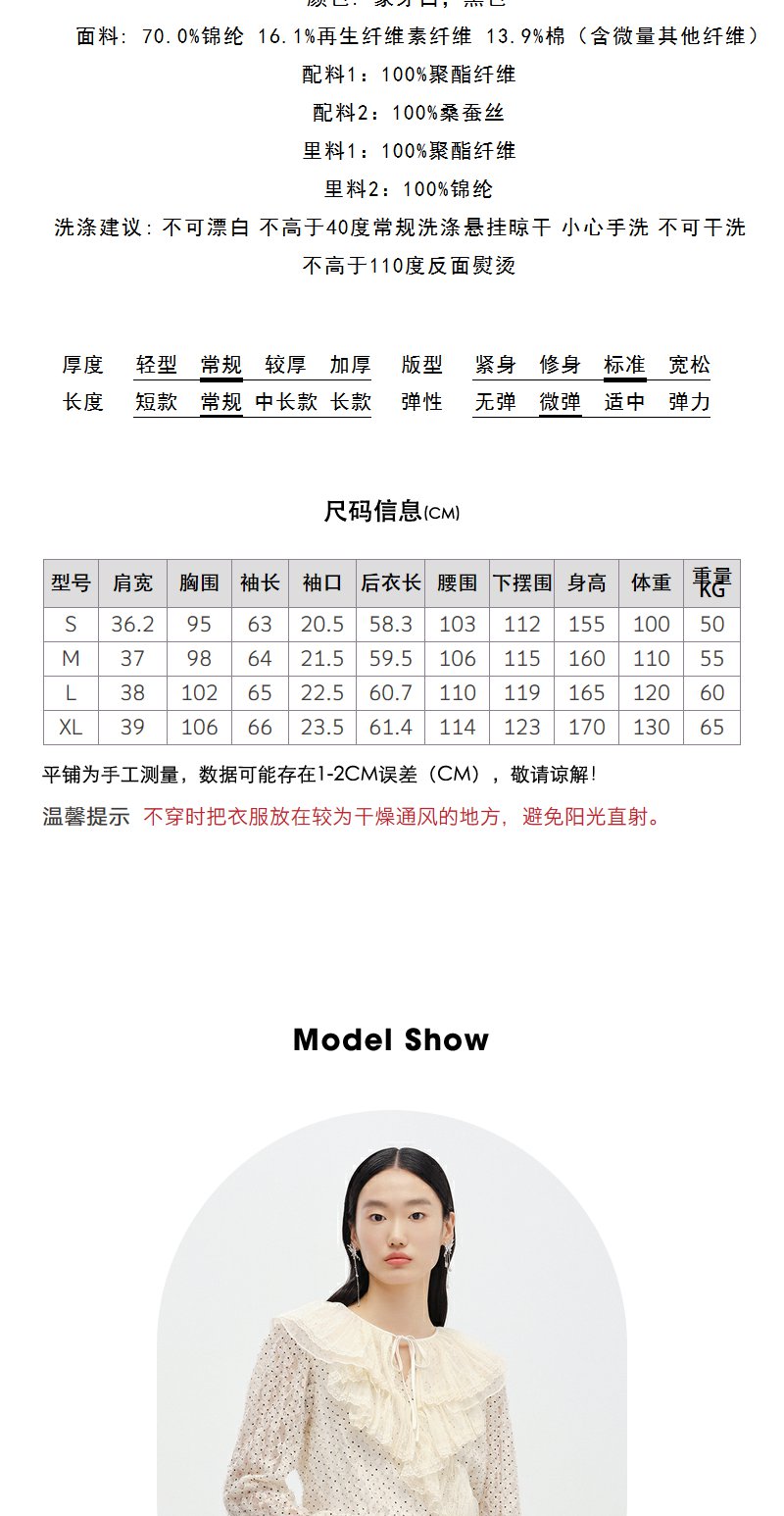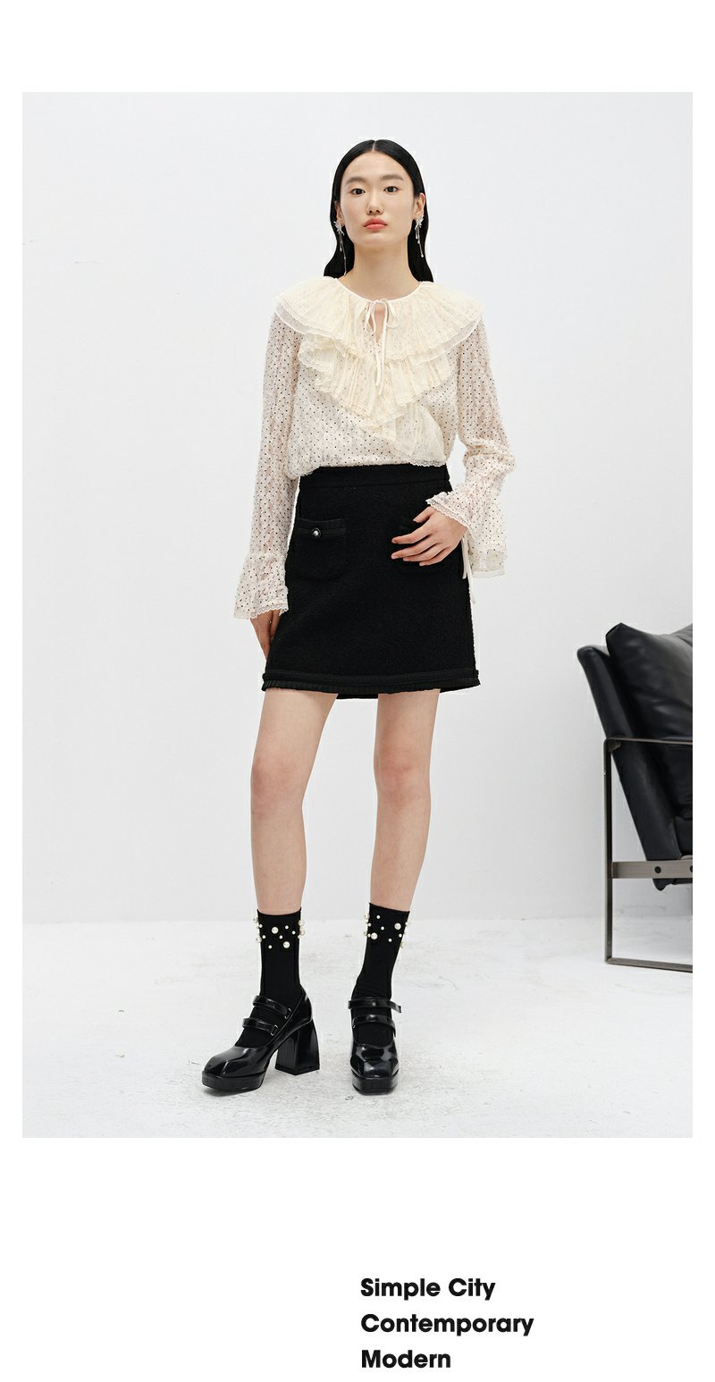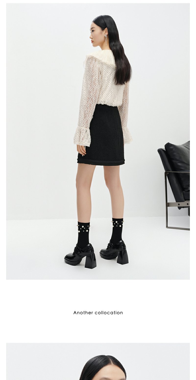 NEELLY纳俪商场同款冬季新款波点衬衫女可爱娃娃领套头上衣喇叭袖N22122R01173