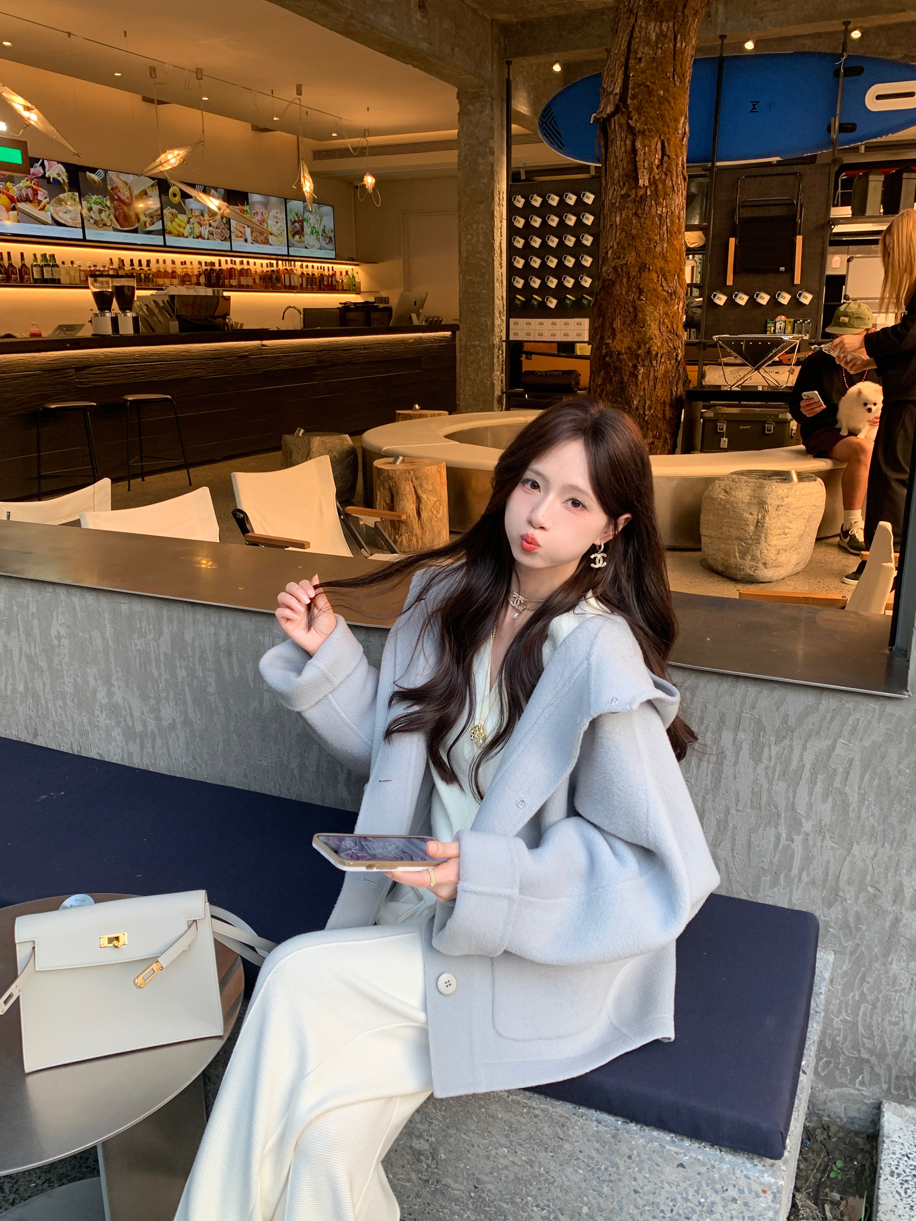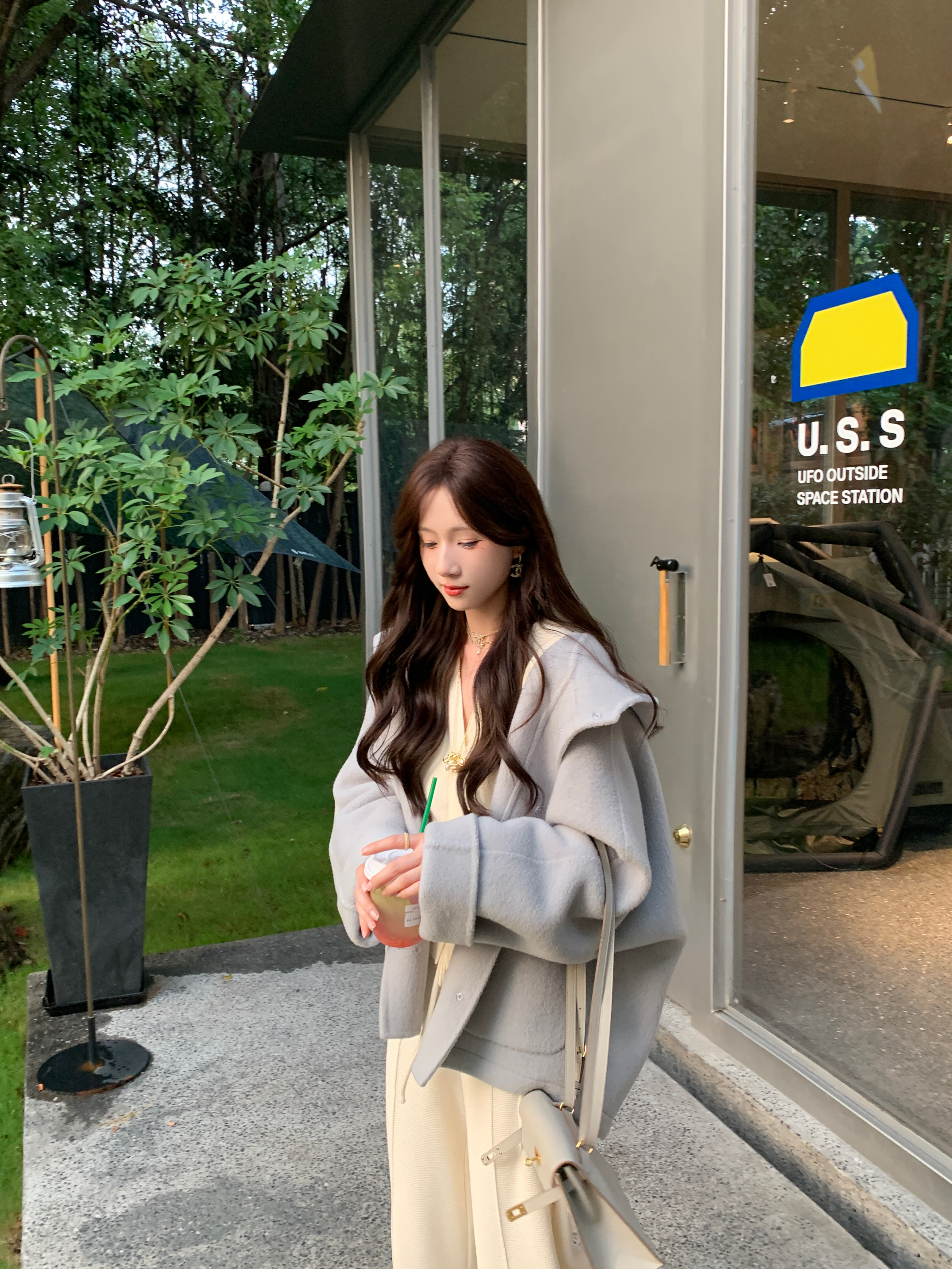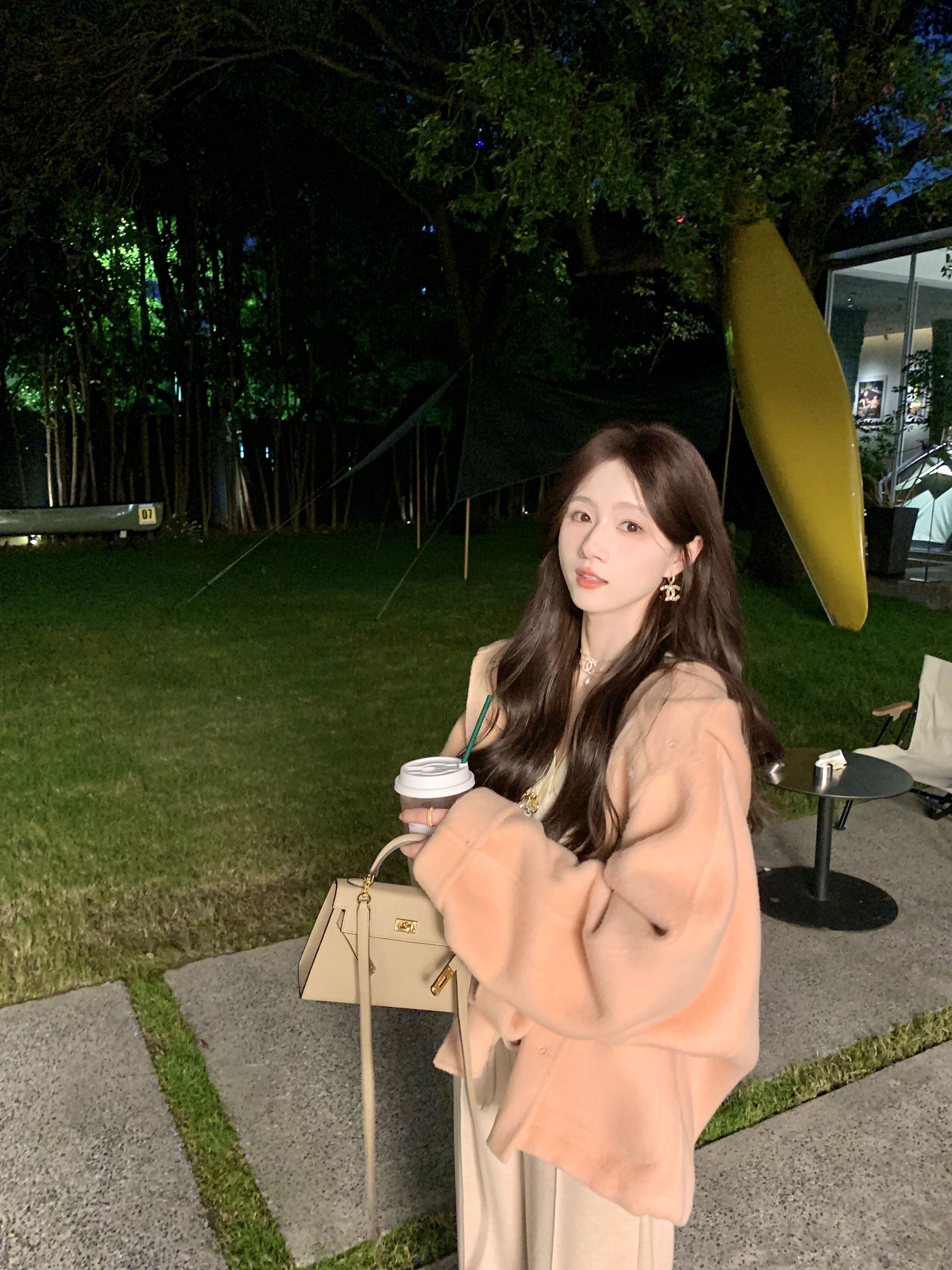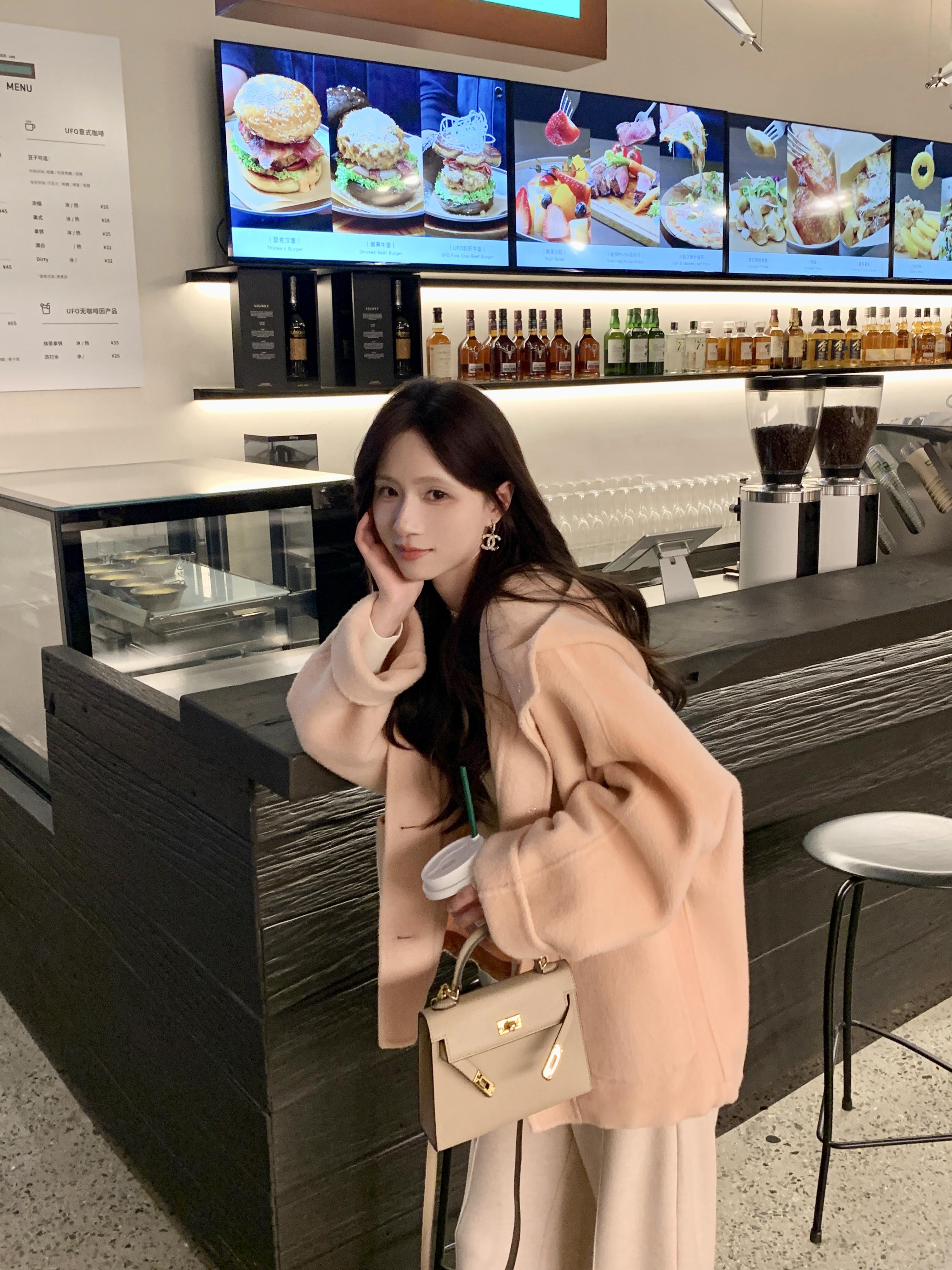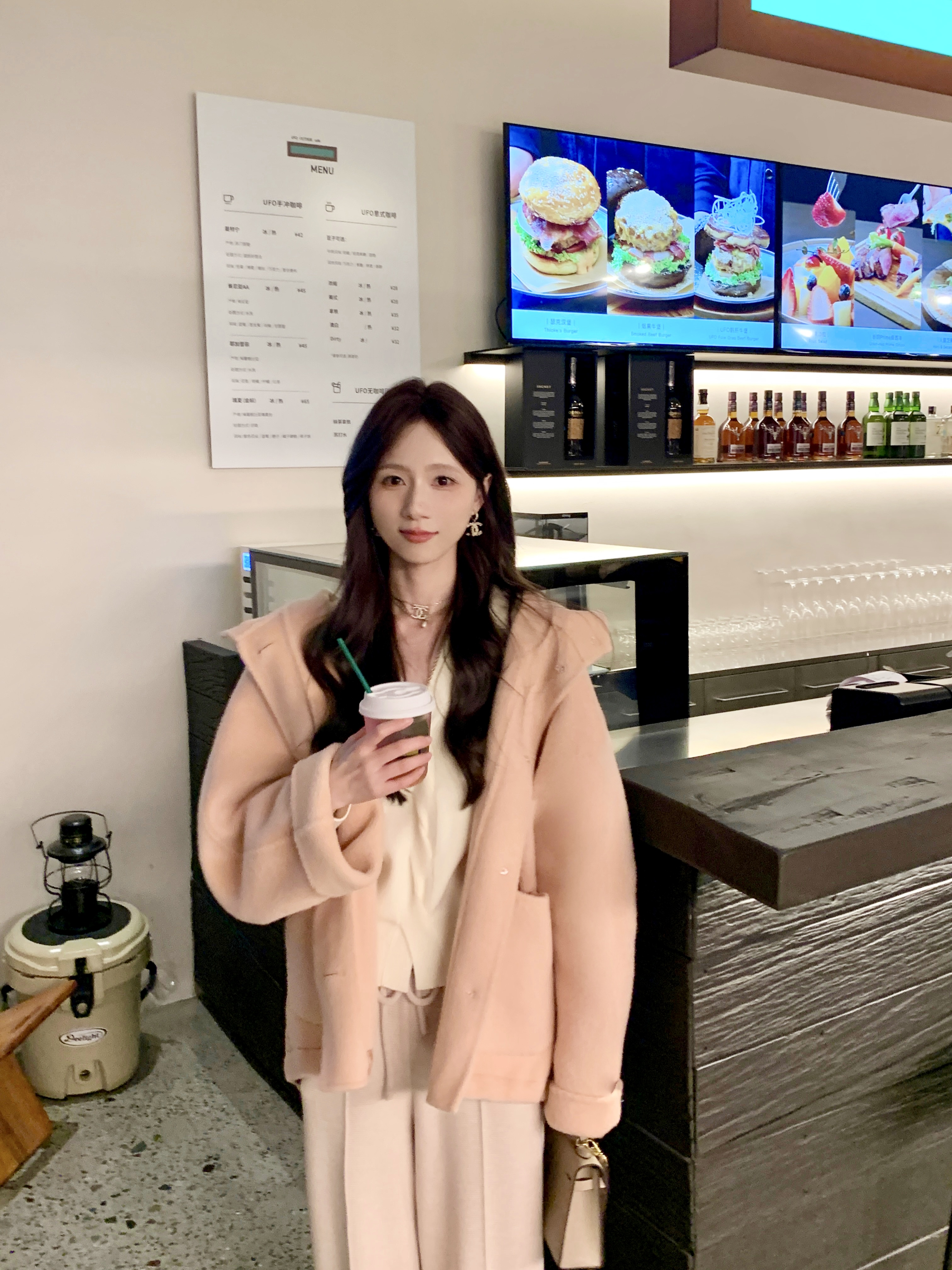 现货 粉色M/L码【冬日恋曲】设计师高定戴帽双面呢秋冬保暖显瘦骆驼绒大衣
