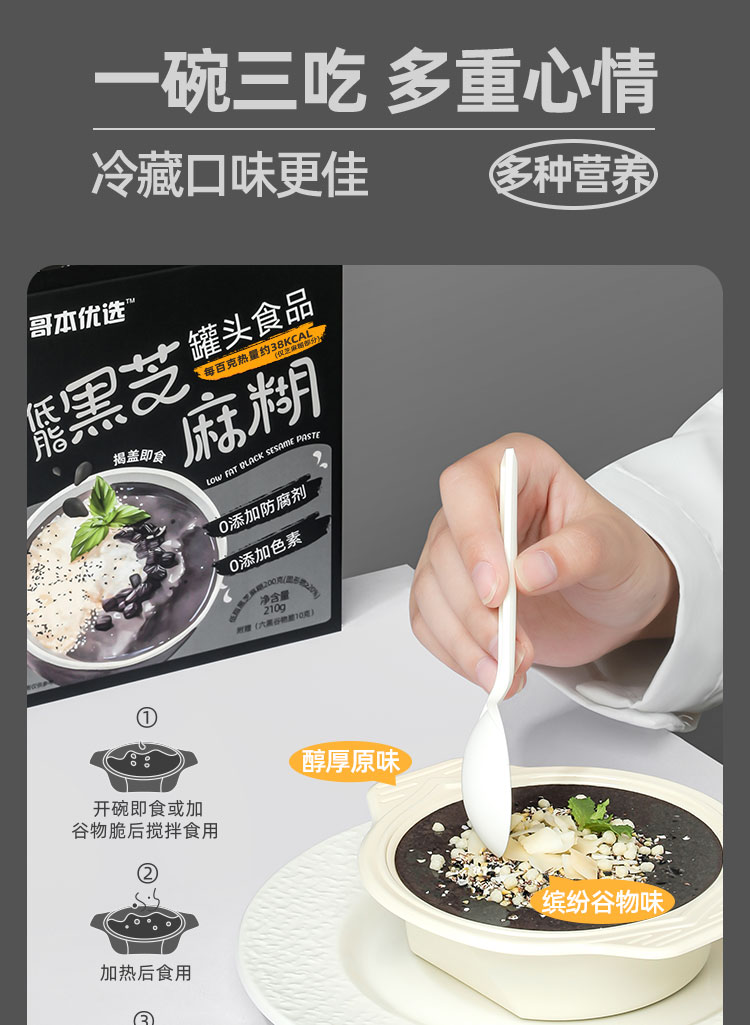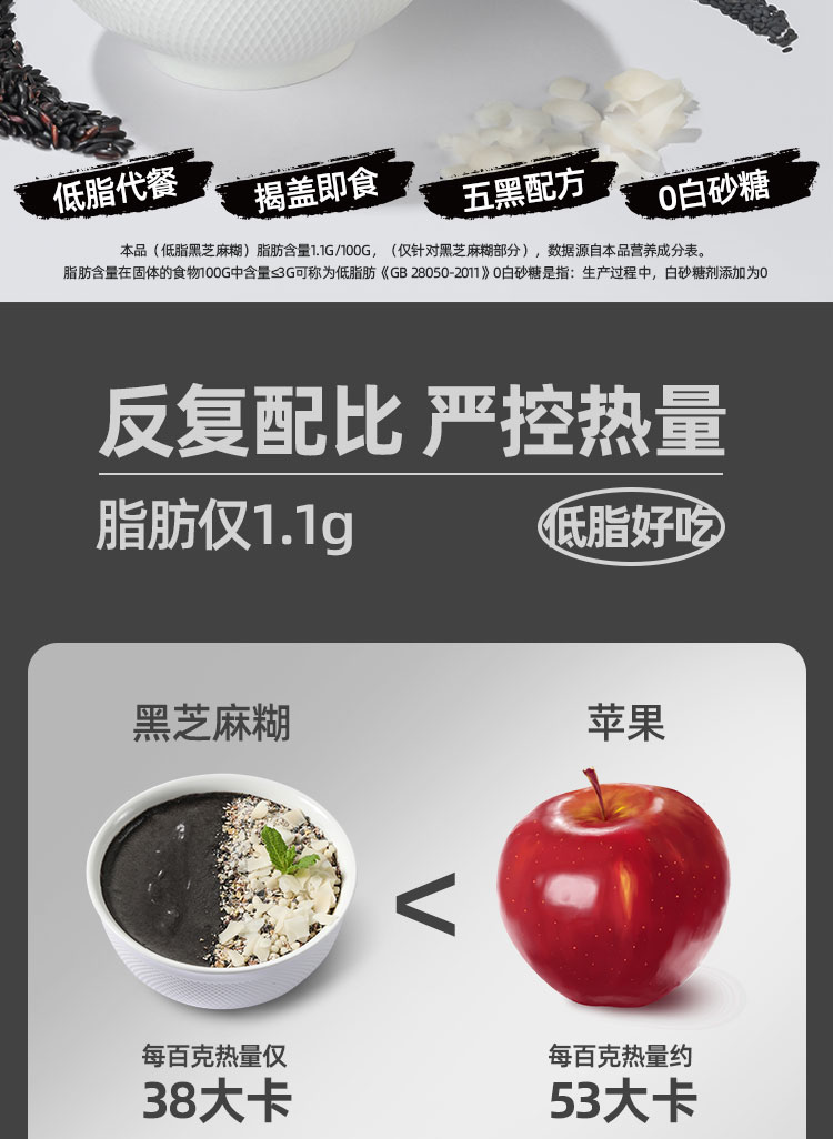 哥本低脂黑芝麻糊 甄选优质黑芝麻 0白砂糖添加 低脂代餐 每百克热量比苹果还低!