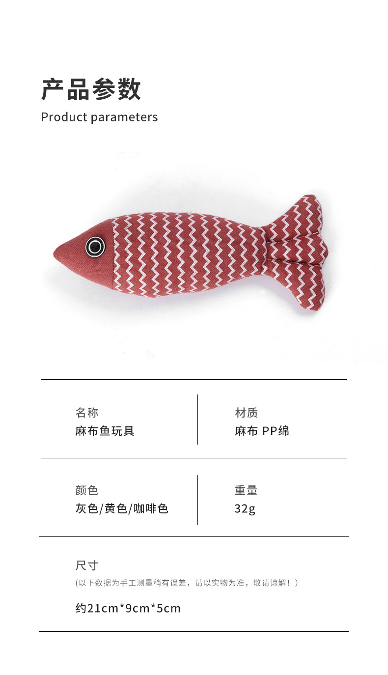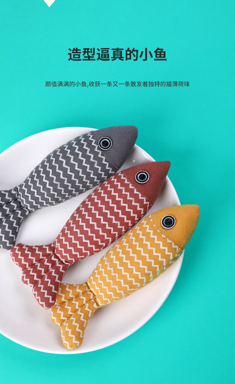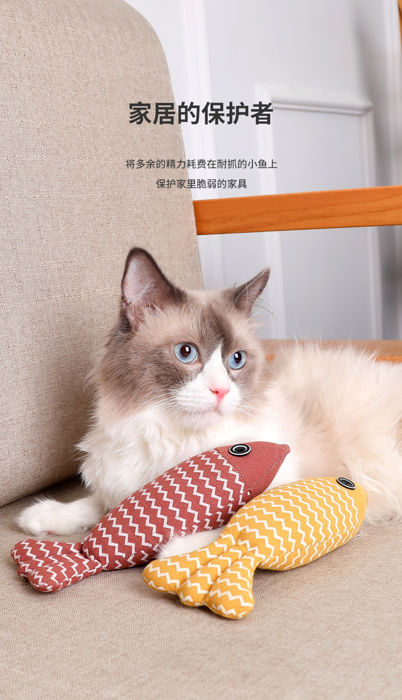 新款 逗猫麻布鱼 内置猫薄荷 加厚磨牙洁齿自嗨解闷