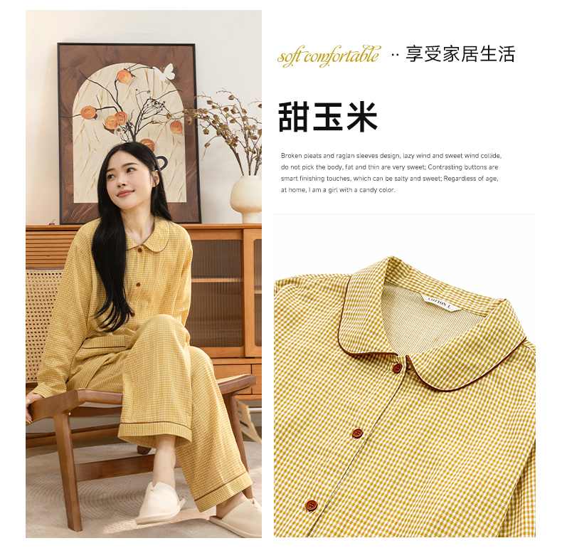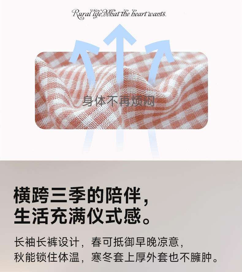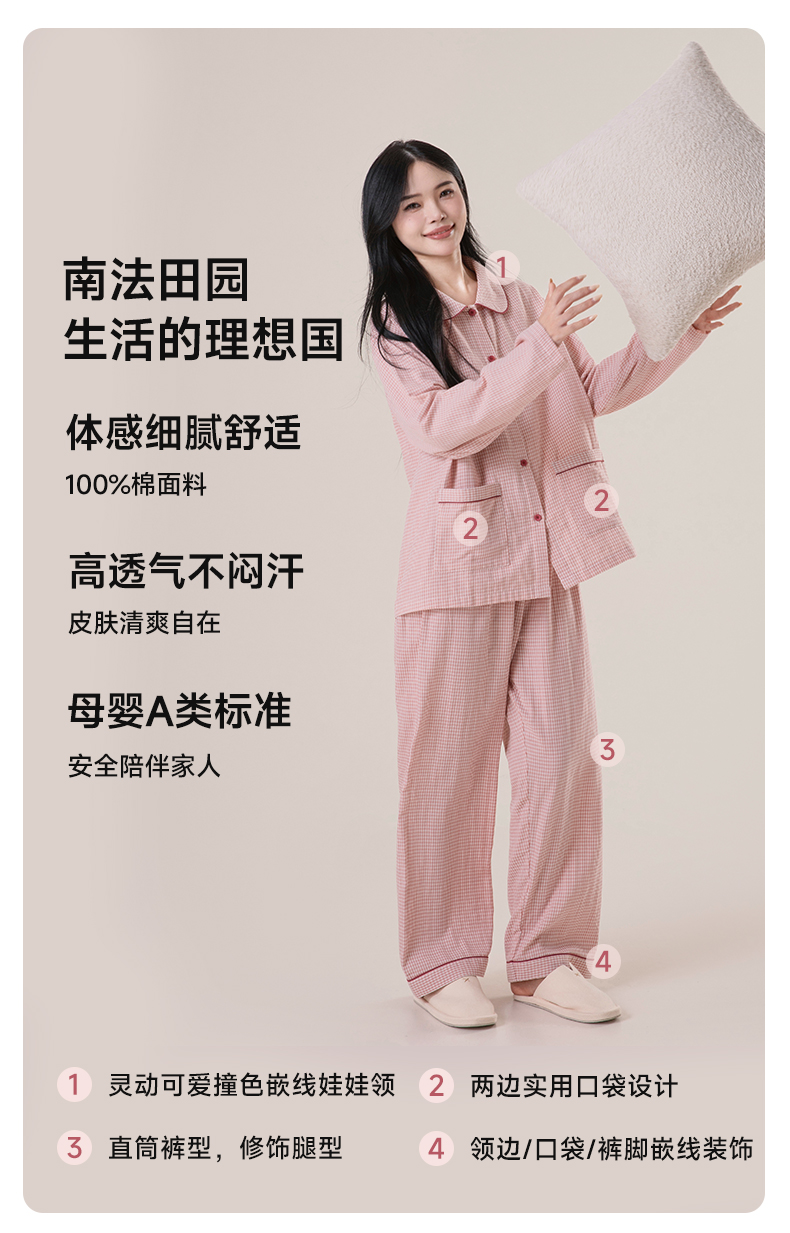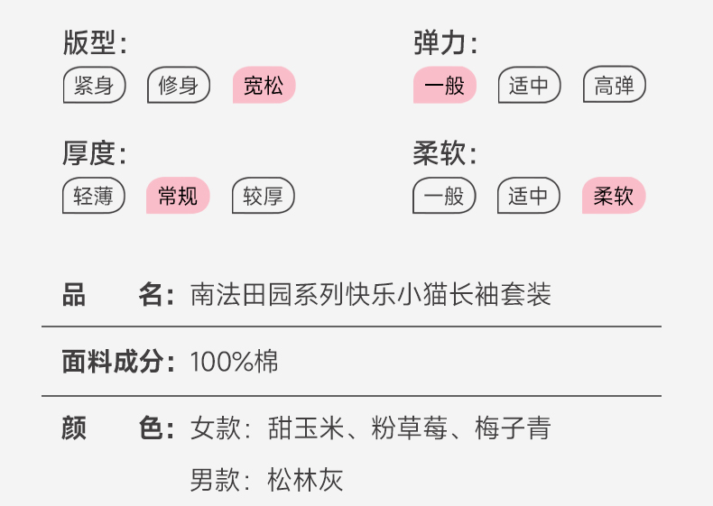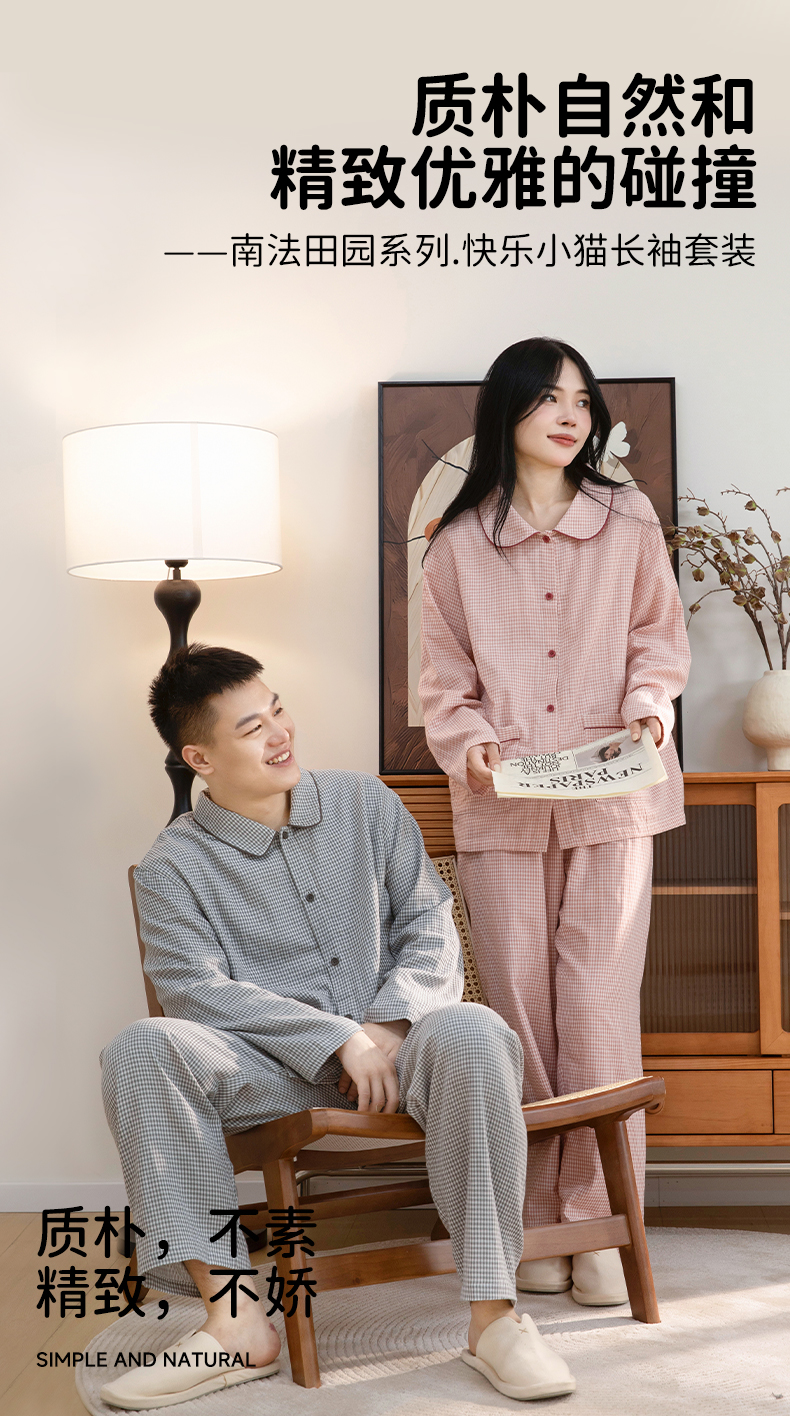 宜色家A类双层纱南法田园·快乐小猫成人套装,质朴自然和精致优雅的碰撞,细腻舒适、高透气