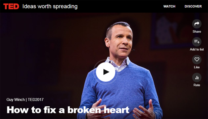 心理学家Guy Winch敦促我们重新思考我们处理情绪痛苦的态度,为心碎的人提供温暖,以及明智的建议。