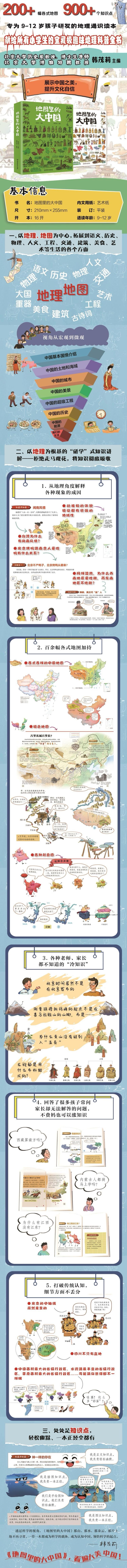 《地图里的大中国》是面向小学生的趣味地理科普书,通过有趣的文字和插图,从地理的视角出发,向小读者解释大自然各种神奇现象的产生原因,然后慢慢过渡到人类社会,再引申出中国的历史、文化,以及现代社会。本书展现给孩子的,不单是某一个学科的知识,而是由地图、地理引出的,包含历史、工程、人文、艺术等诸多学科的一整张知识网络。本书所阐述的知识点不浮于表面,而是将知识点背后的趣闻挖出来展示给孩子,让孩子透过这些趣闻,反过来更好地理解各种知识,将知识充分吸收。此外,文字幽默风趣之余,尽显中华语言之美——“生于东北的玄黑”“长江以南寻胭脂”“毛月,不止天空蓝”等中国色唯美浪漫,可以让孩子轻松了解自己的祖国和家乡,感受中国之美,提升文化自信。
