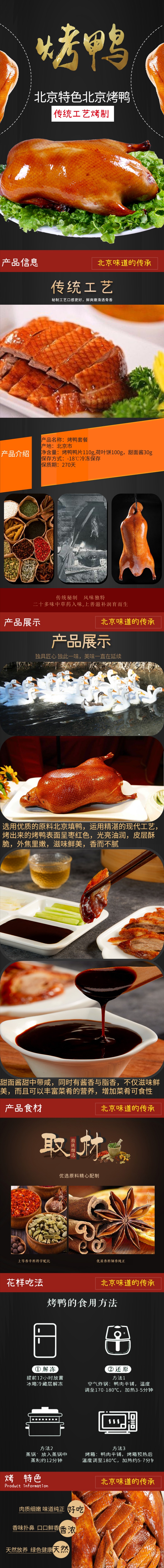 正宗北京焖炉烤鸭,6袋组合,人工片皮切片,方便食用,含荷叶饼+调味酱料,色泽红艳,肉质细嫩,味道醇厚,肥而不腻D