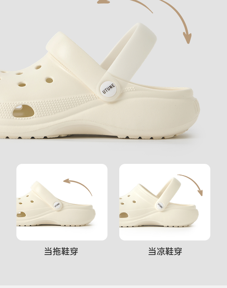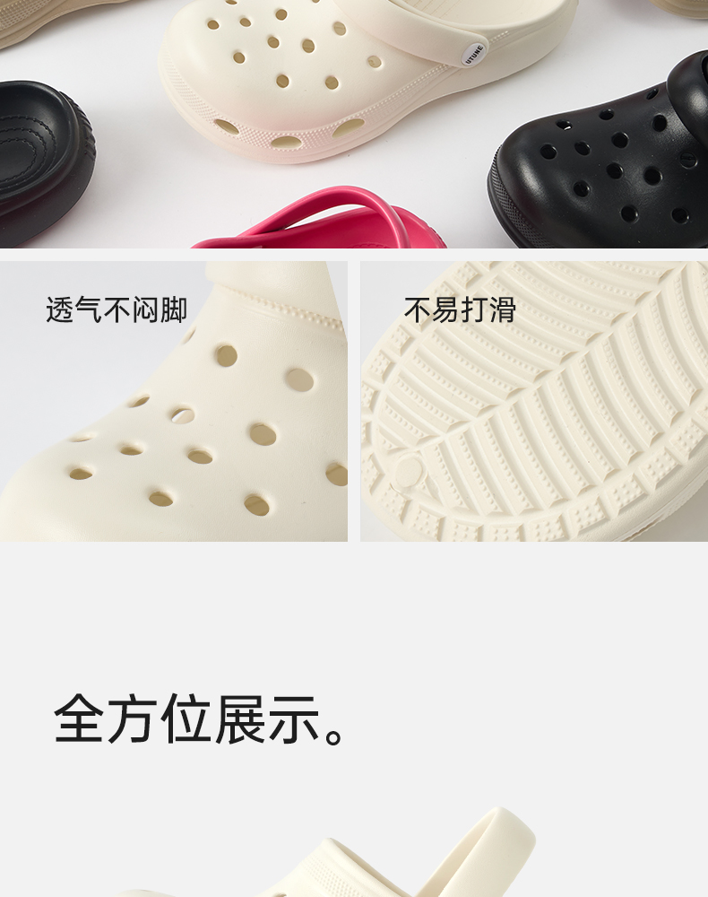 【2026新款】优调 云间洞洞鞋 厚底洞洞鞋女款 户外增高凉鞋 海边沙滩鞋防滑包头半拖 UXT1523