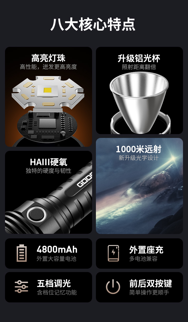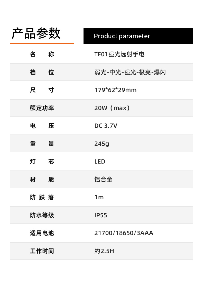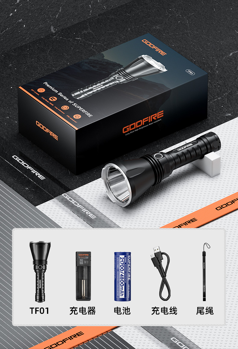 神火TF01战术强光手电筒户外超亮远射充电长续航户外照明