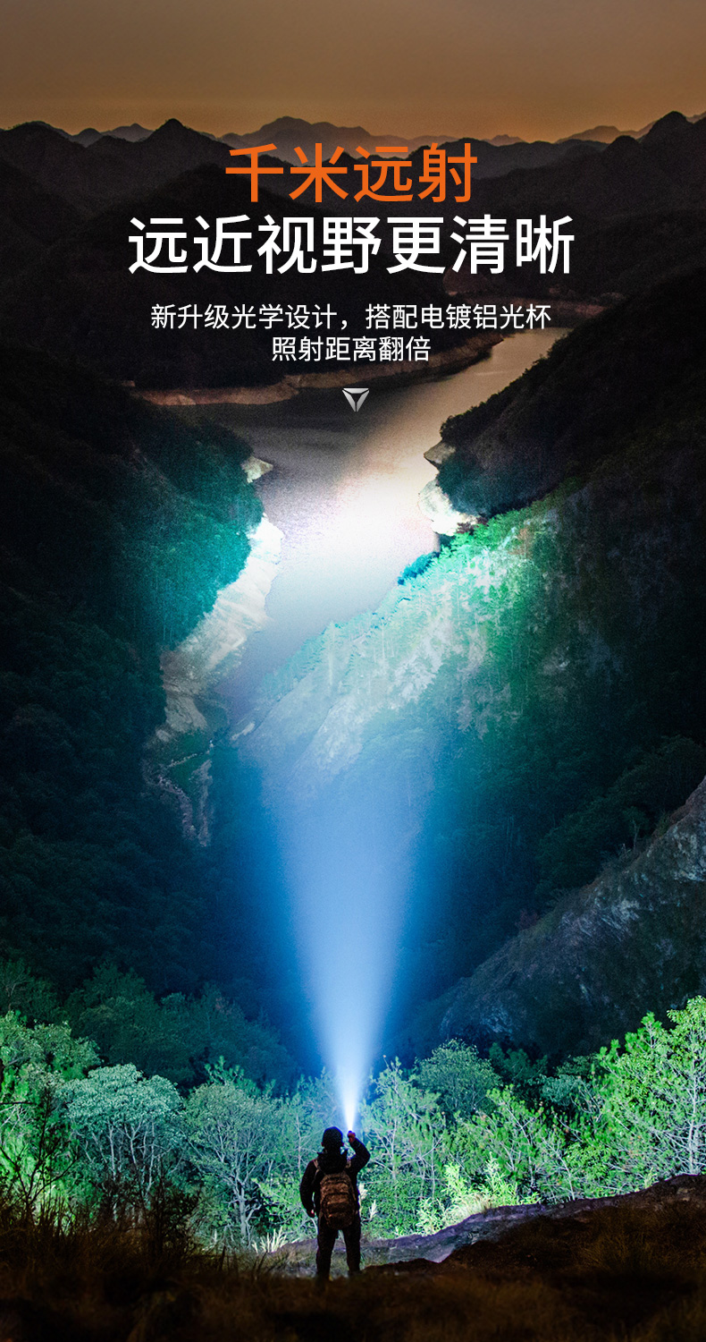 神火强光手电Y39高亮白激光远射变焦超长续航户外家用照明装备