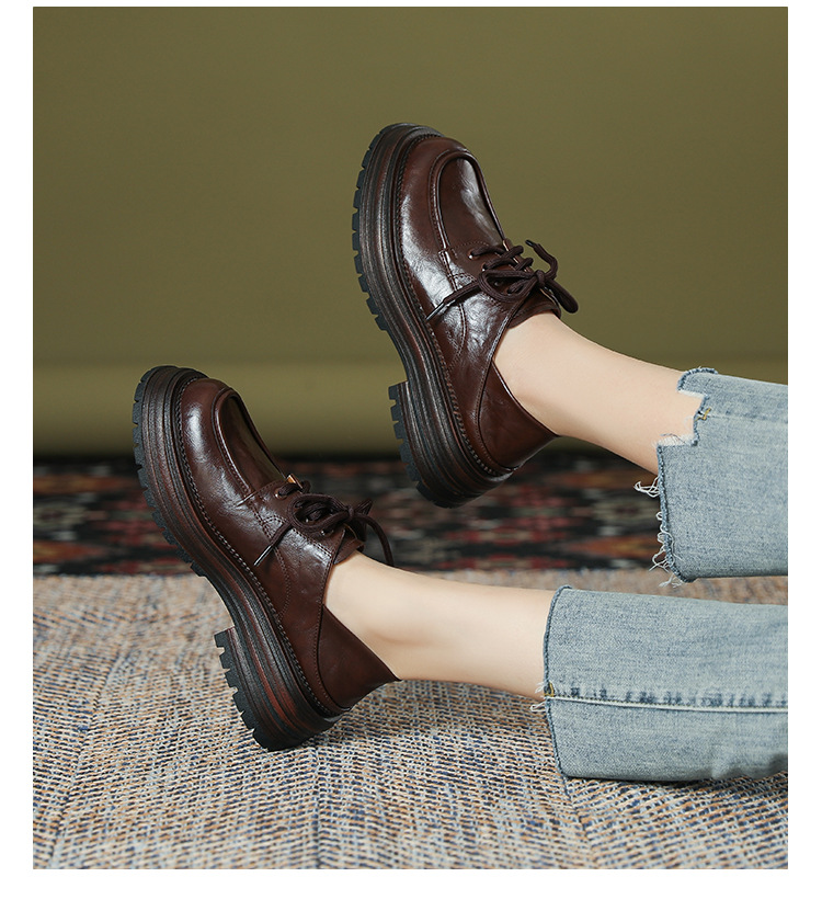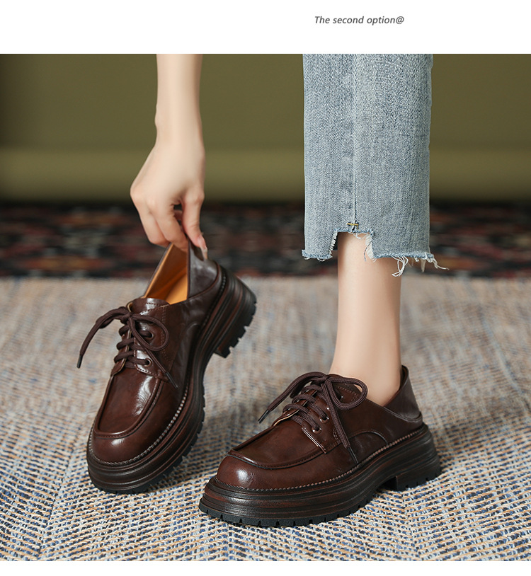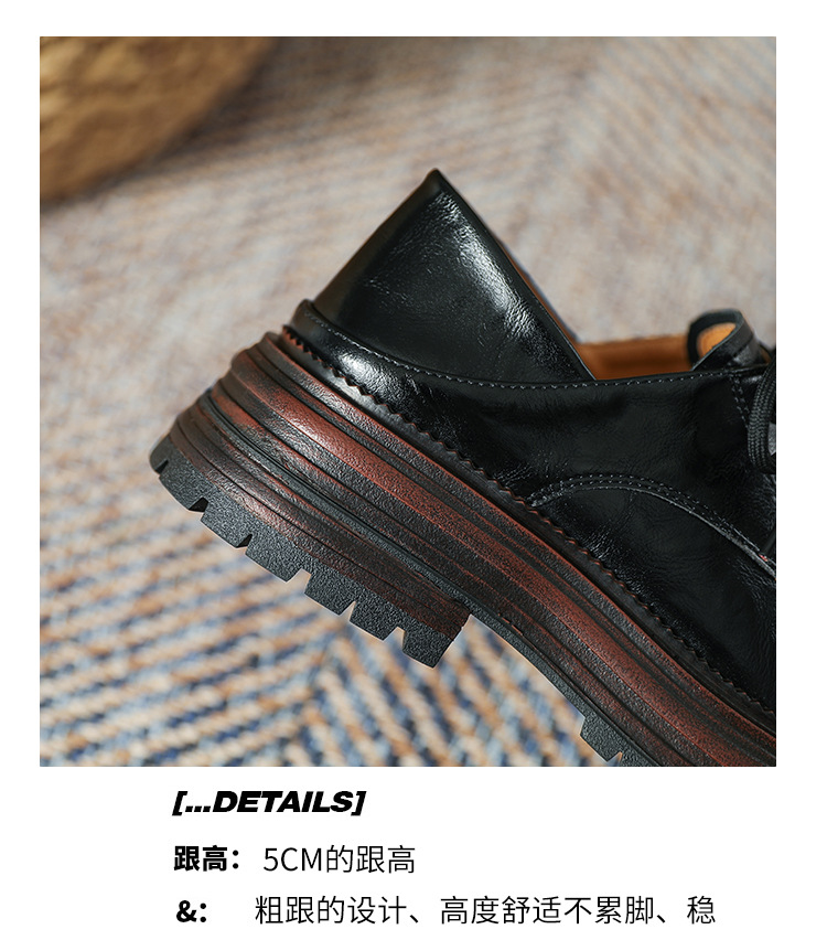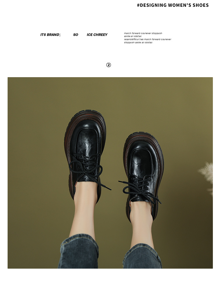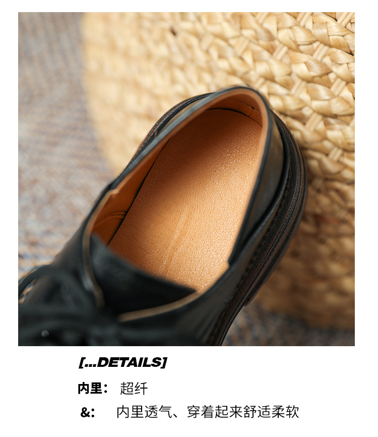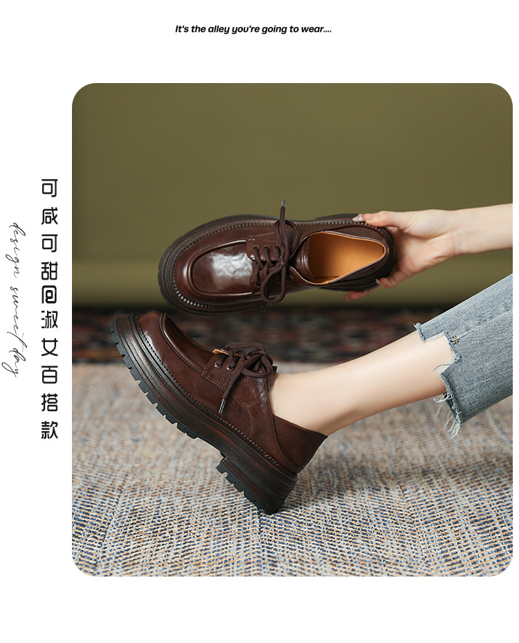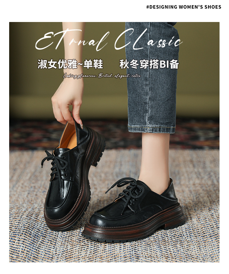 厚底小皮鞋女英伦风2025春夏新款单鞋圆头粗跟甜酷女生系带乐福鞋