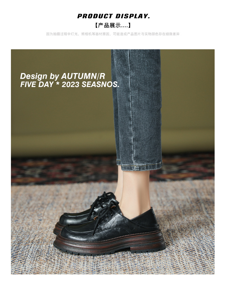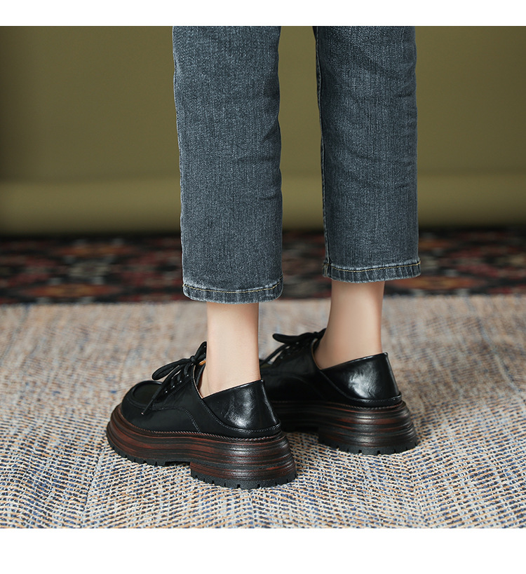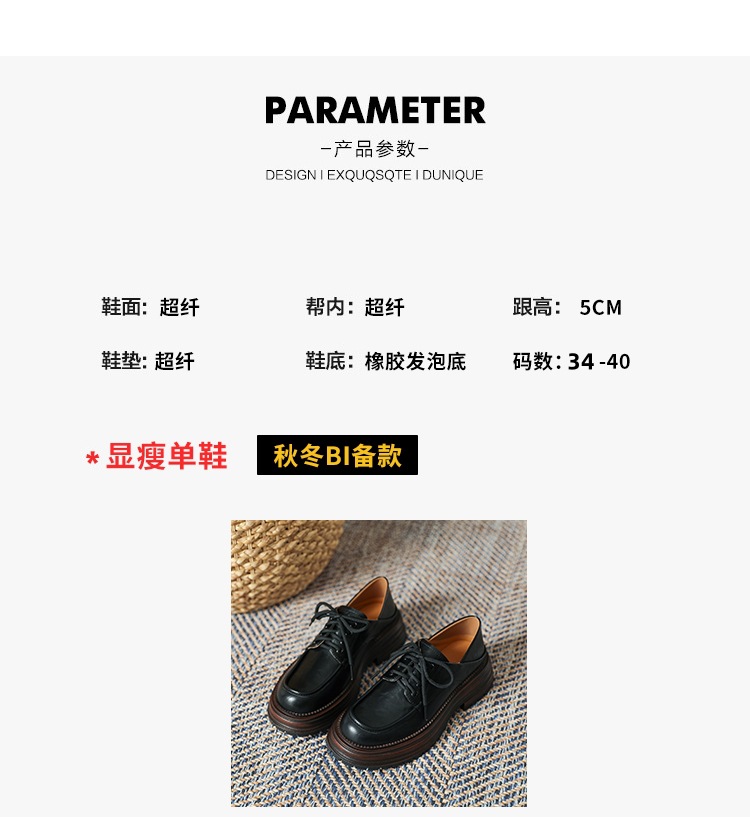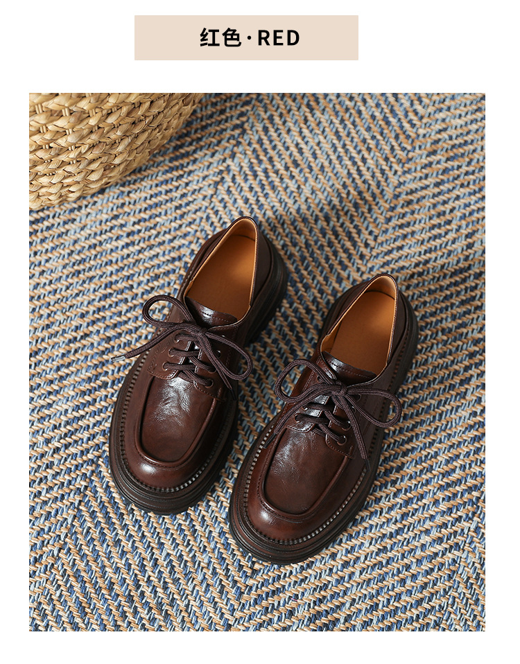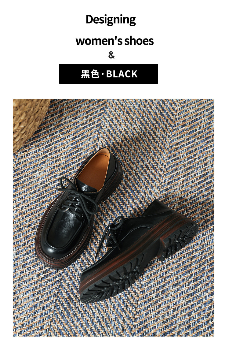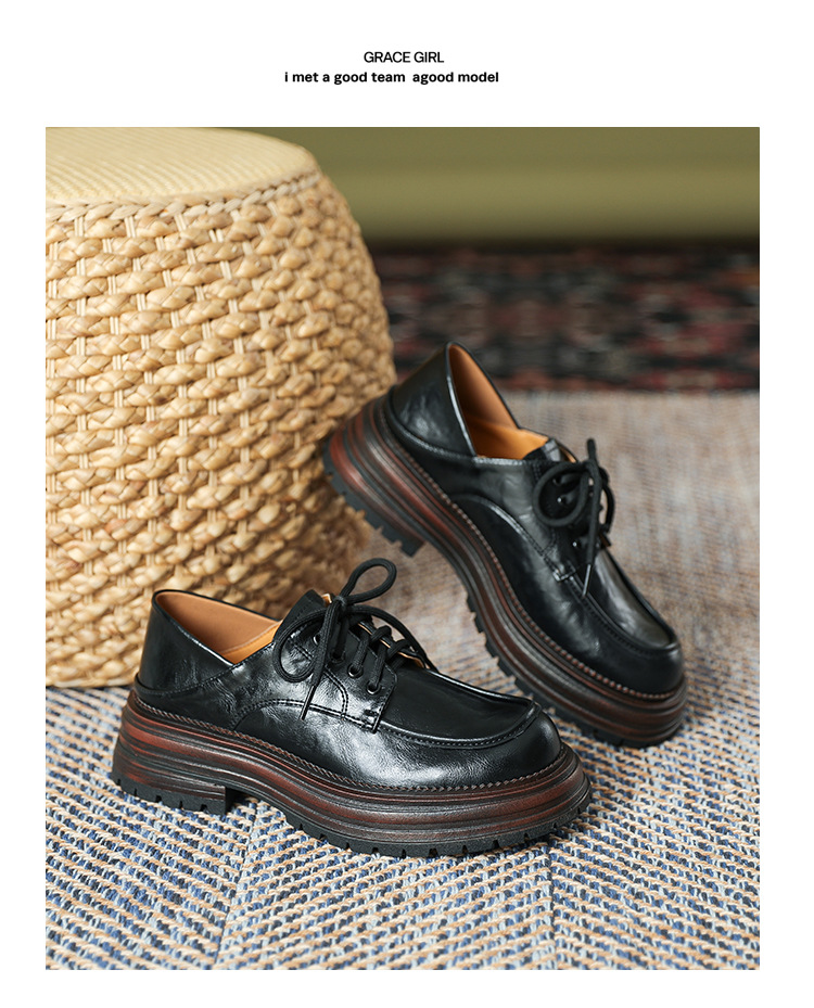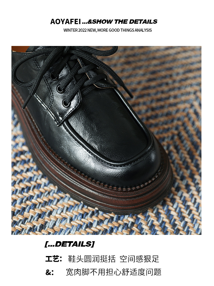 厚底小皮鞋女英伦风2025春夏新款单鞋圆头粗跟甜酷女生系带乐福鞋