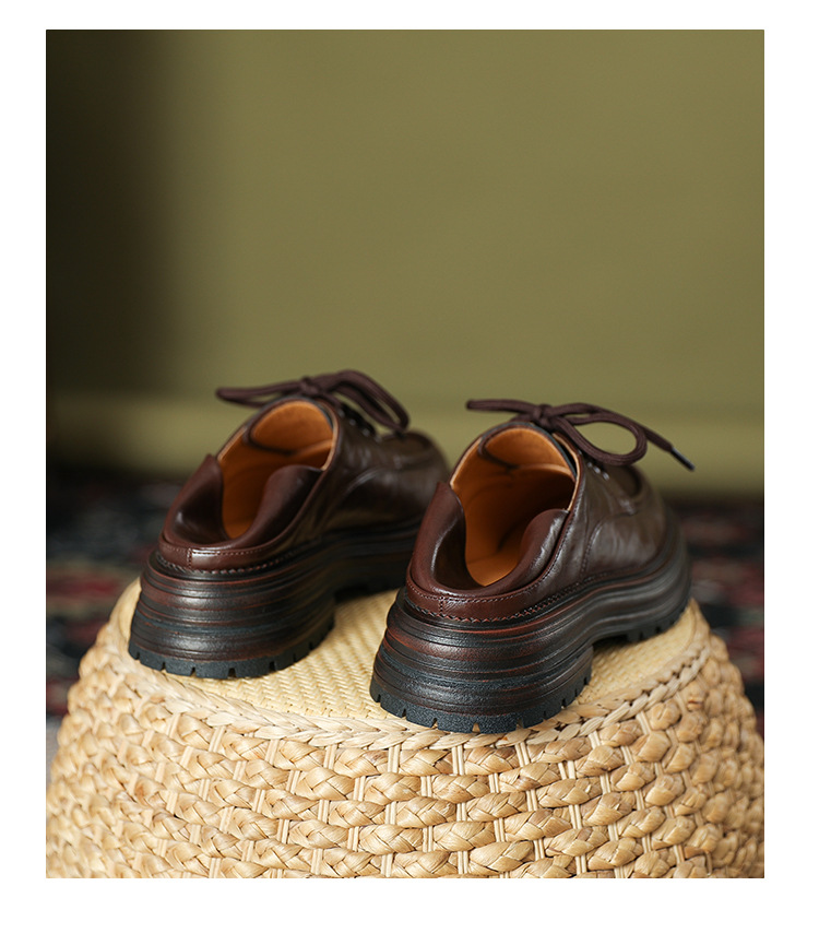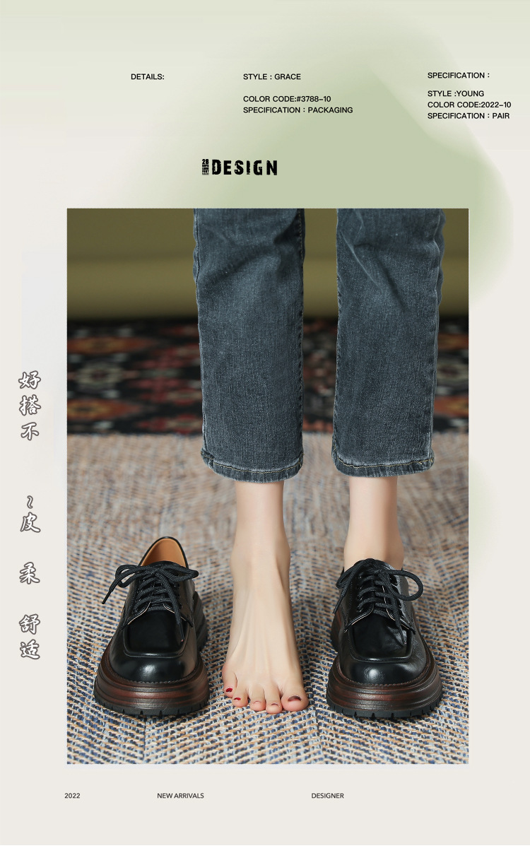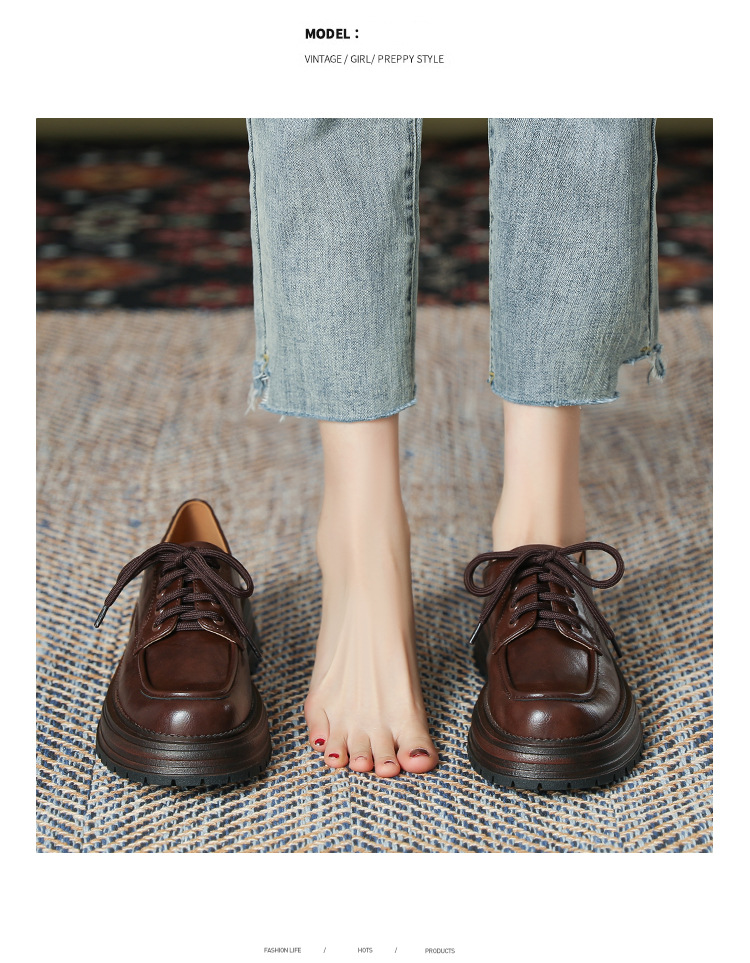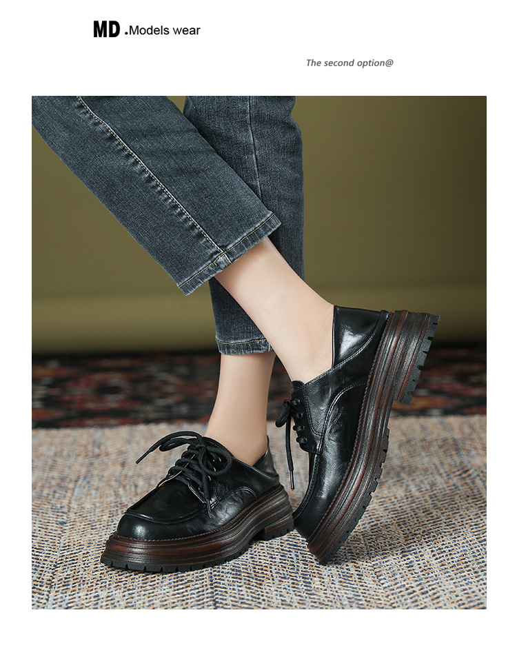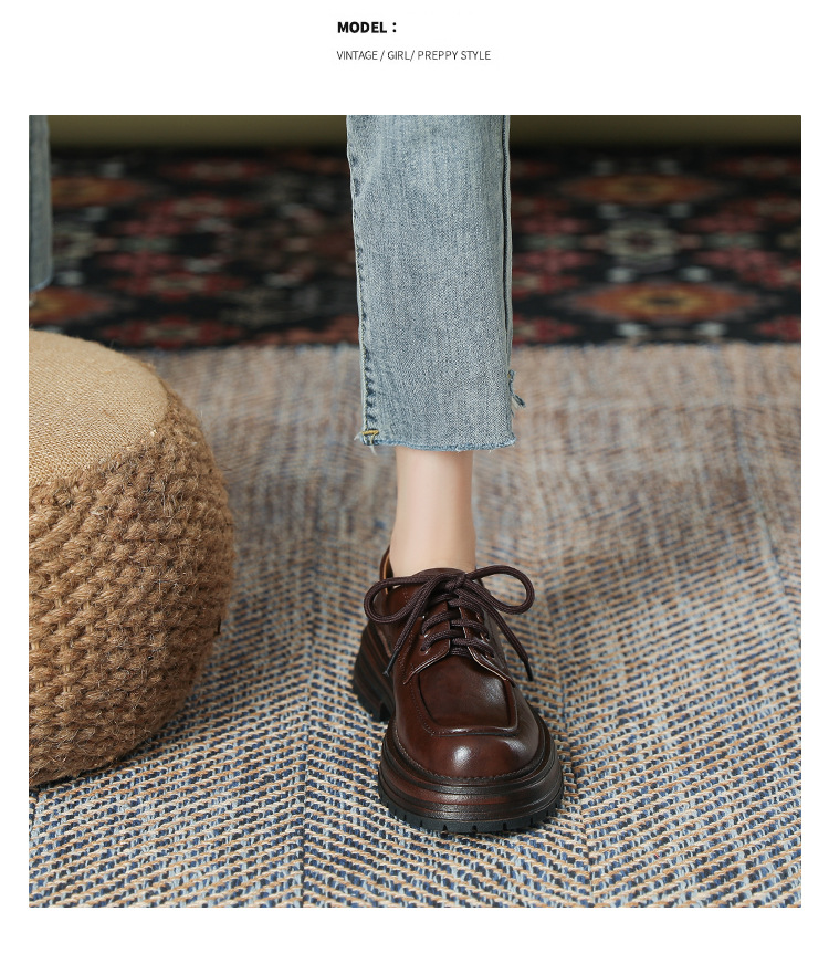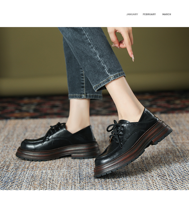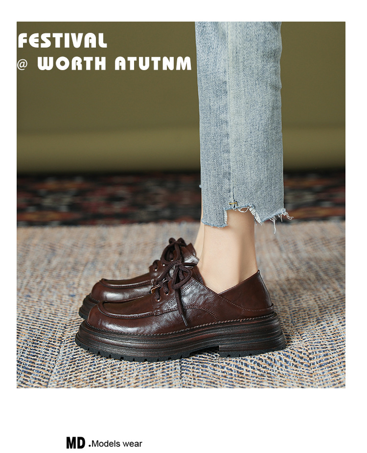 厚底小皮鞋女英伦风2025春夏新款单鞋圆头粗跟甜酷女生系带乐福鞋