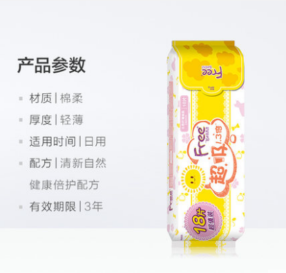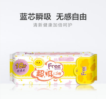Free厚吸1.3倍日用纤薄棉柔卫生巾240mm18片 特价