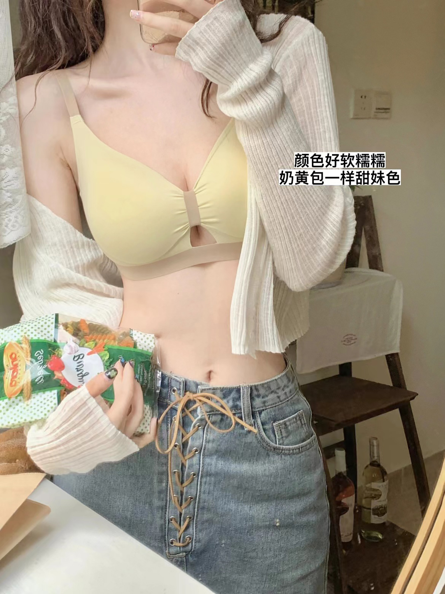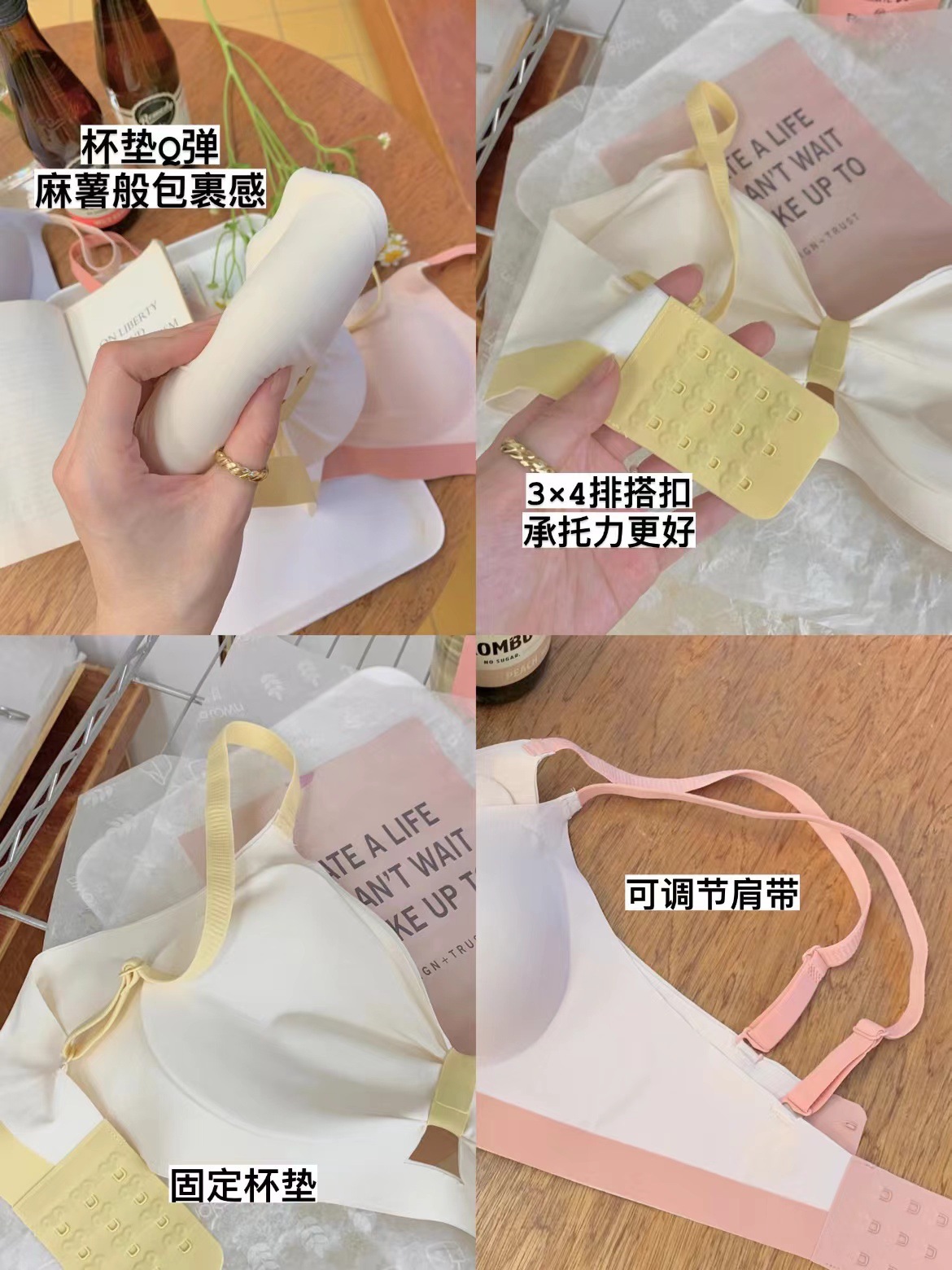 【超自然❗甜美蝴蝶聚拢文胸】一片式无痕冰丝薄款自然圆润,Q杯垫弹,麻薯般包裹感,聚拢文胸女士内衣无钢圈女生胸罩QQ