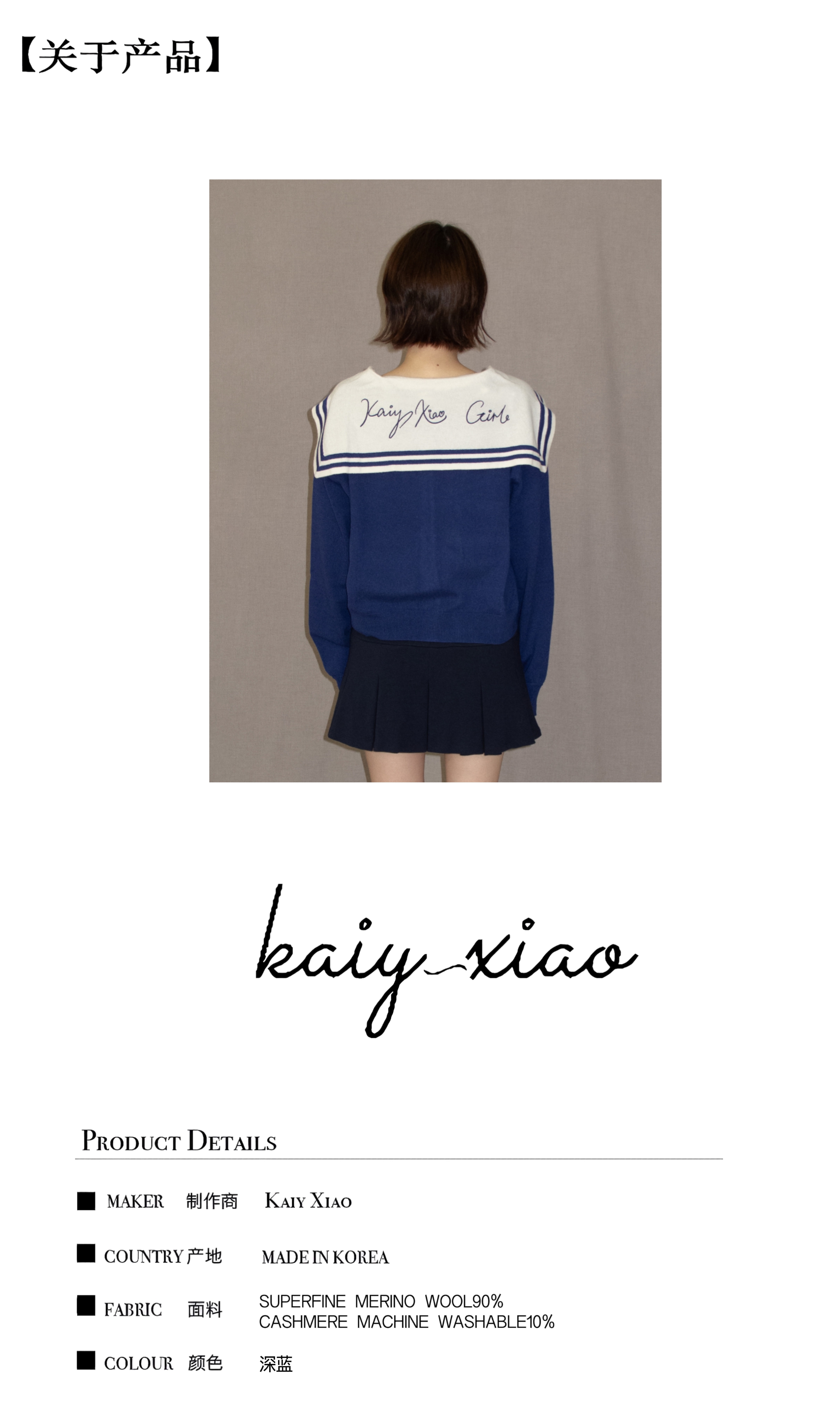Kaiy Xiao 航海魔法师系列 海军领羊绒衫