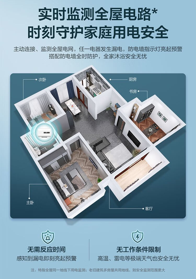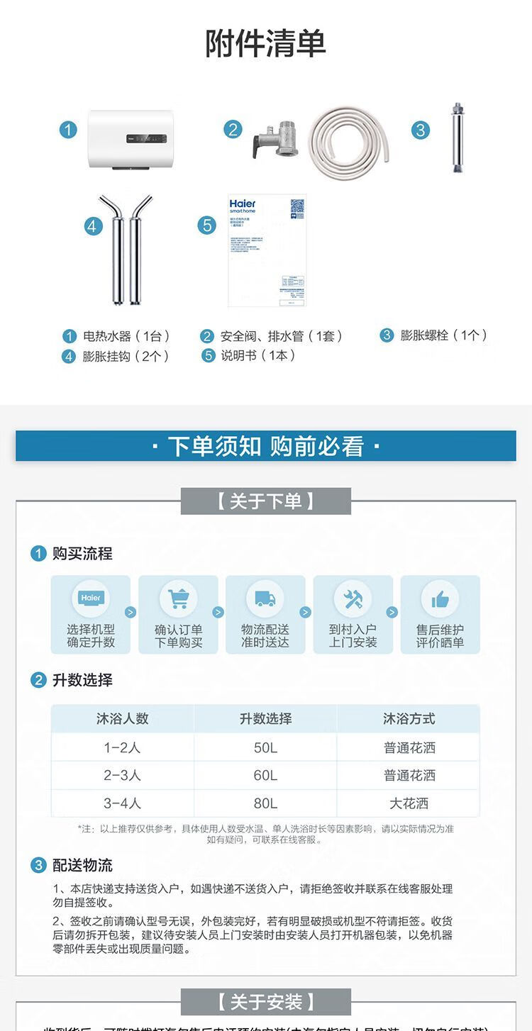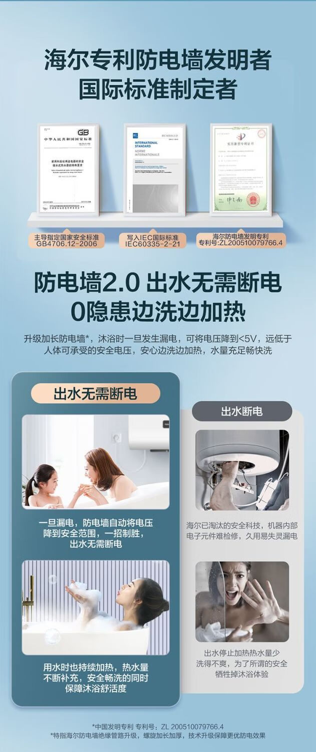 海尔智能电热水器家用双胆内胆免清洗80升RH1商用电热水器 海尔扁桶双胆80升