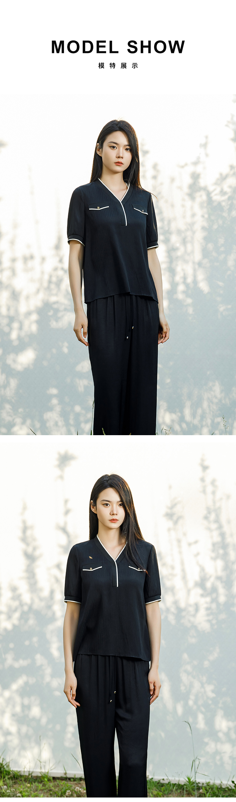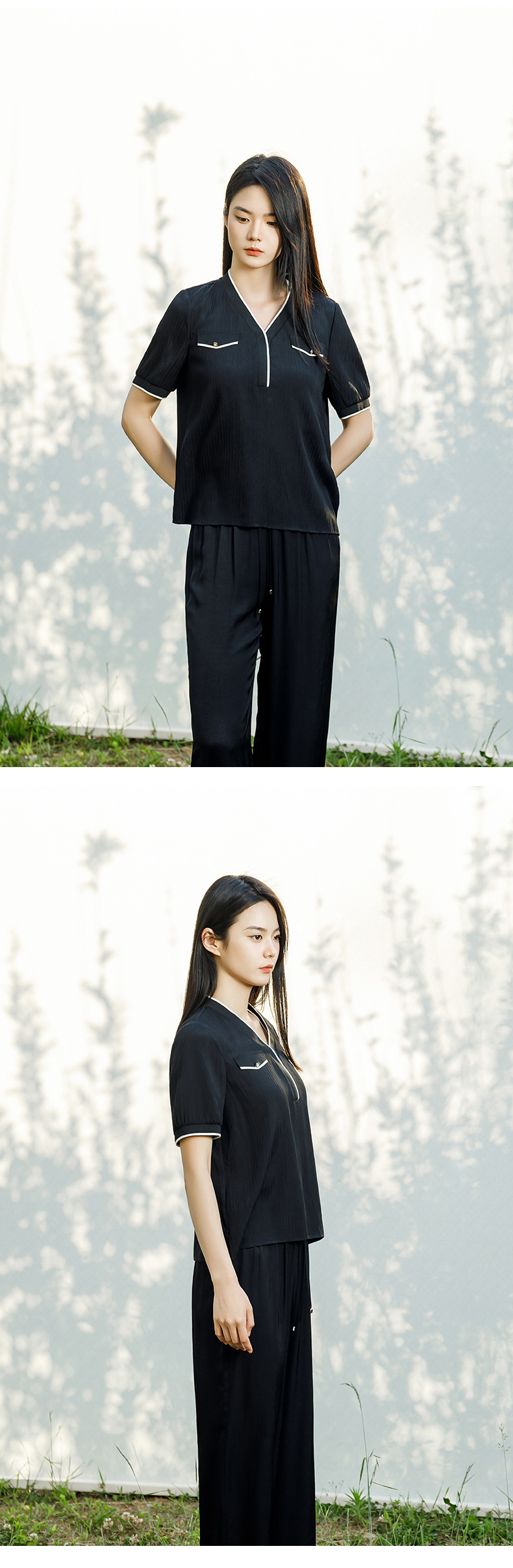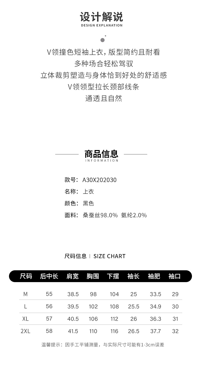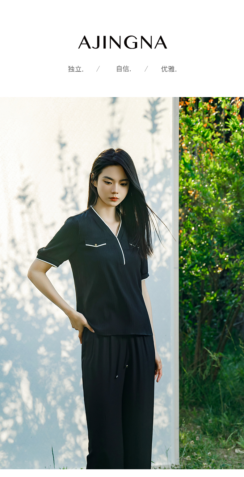 【商场同款】阿菁娜2024夏季新款V领撞色短袖上衣A30X202030