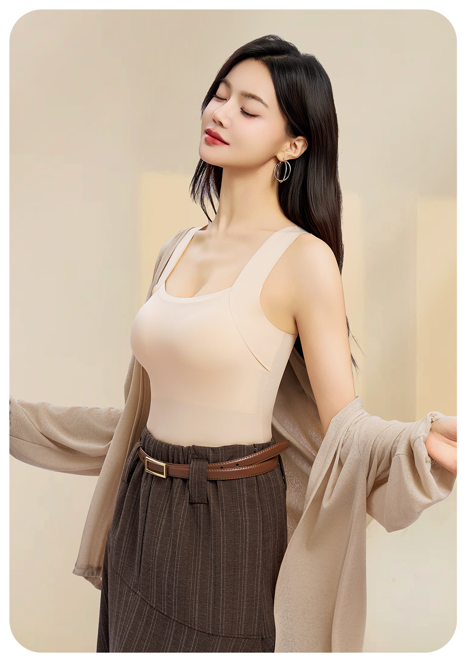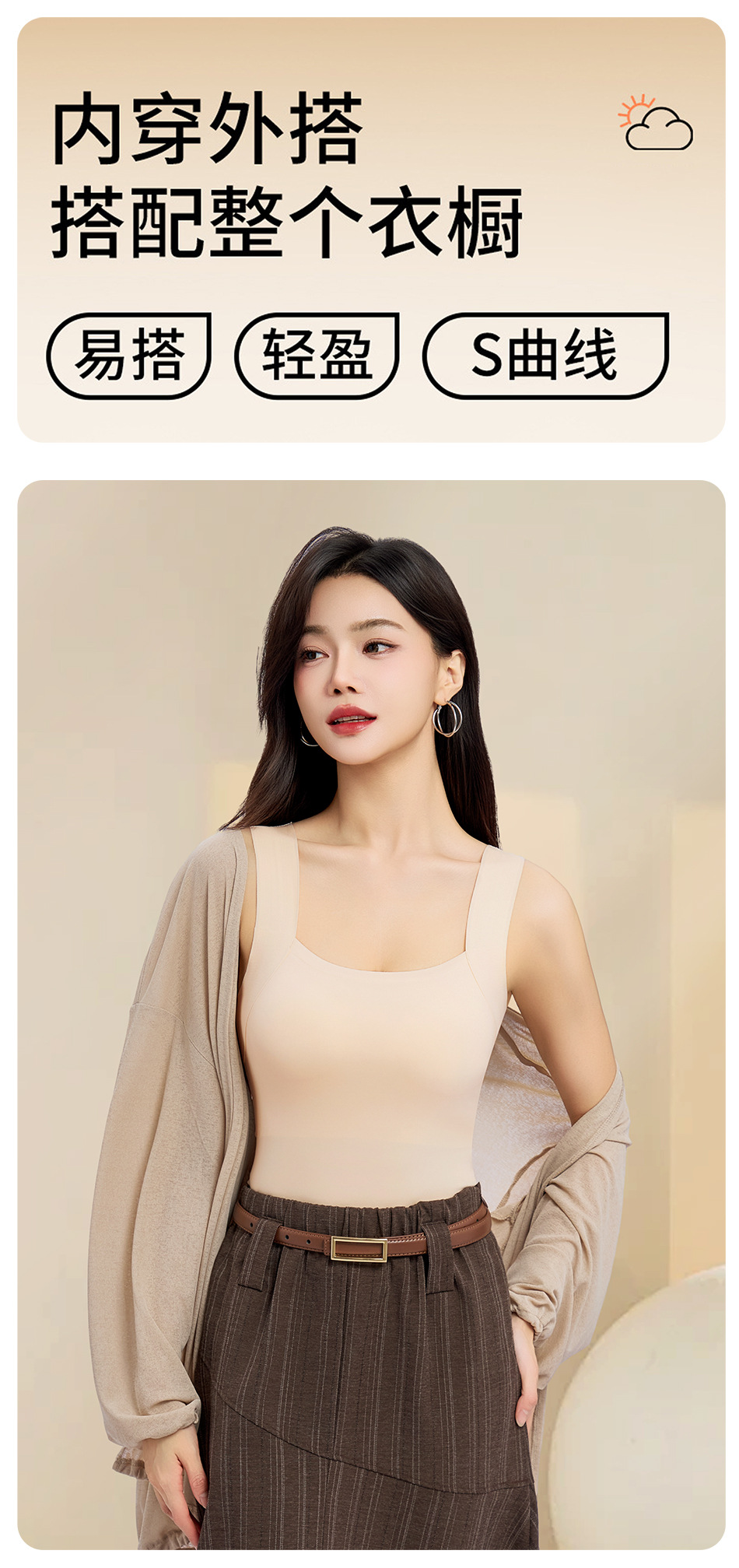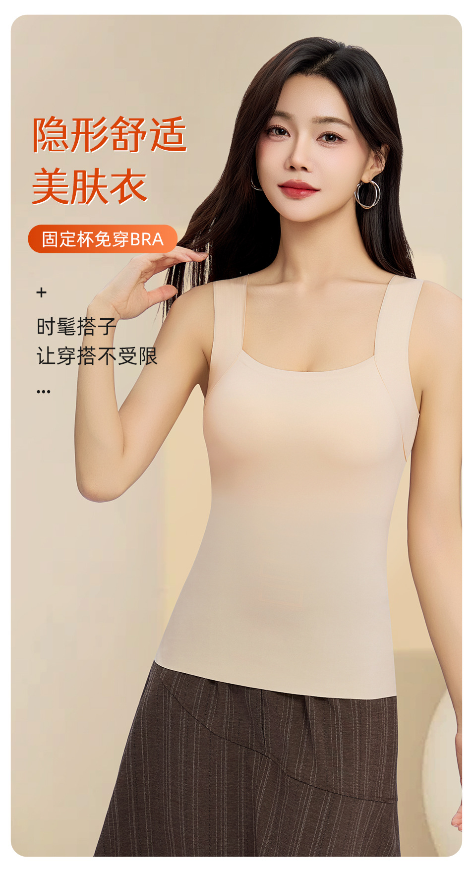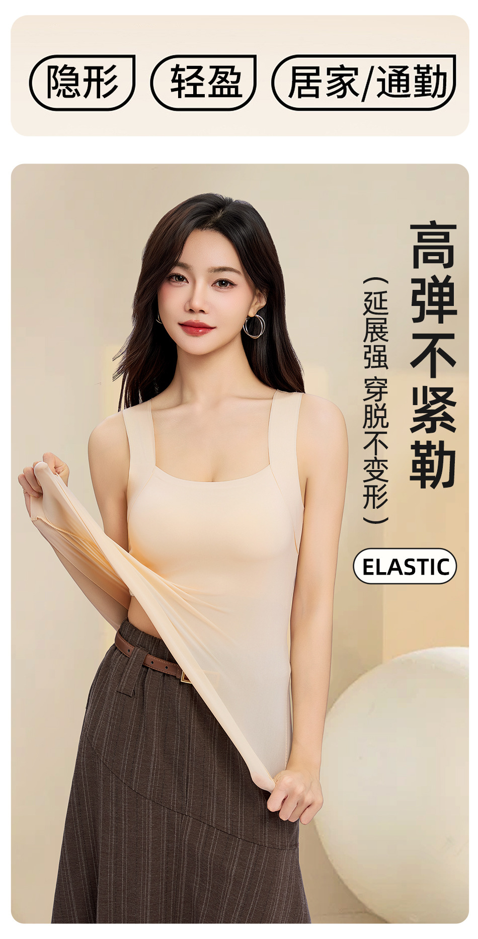 【高弹不勒!修身不臃肿】四季款女士背心带胸垫大码透气裸感美肤肌底衣可外穿内搭打底衣。xb