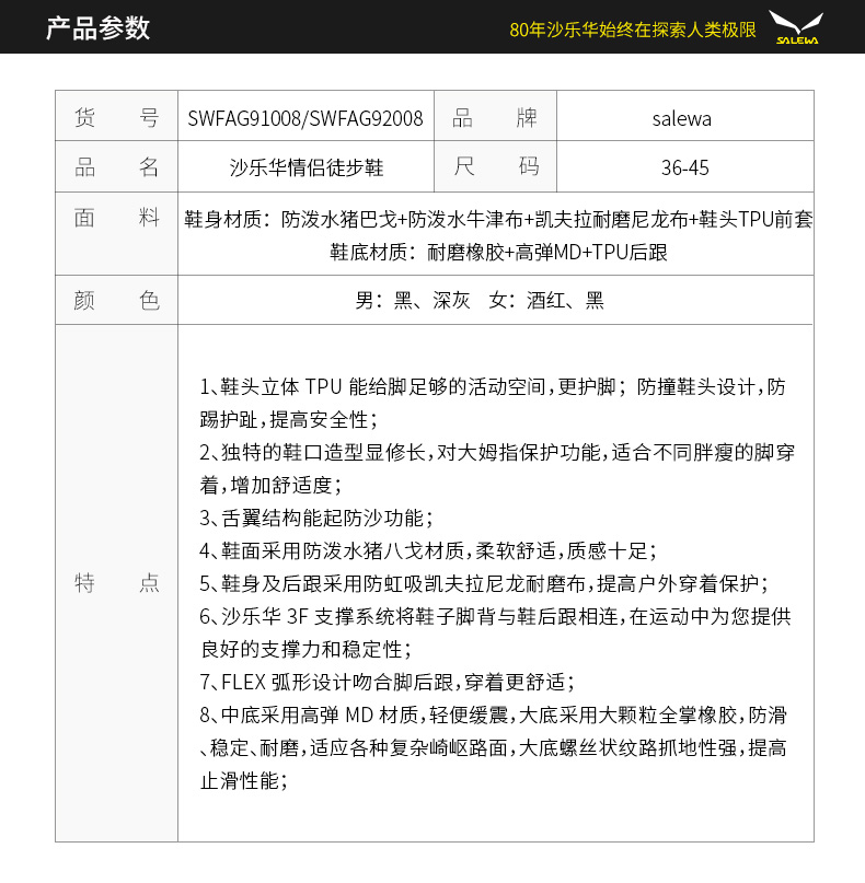 SALEWA沙乐华/男式徒步鞋 SWFAG91008