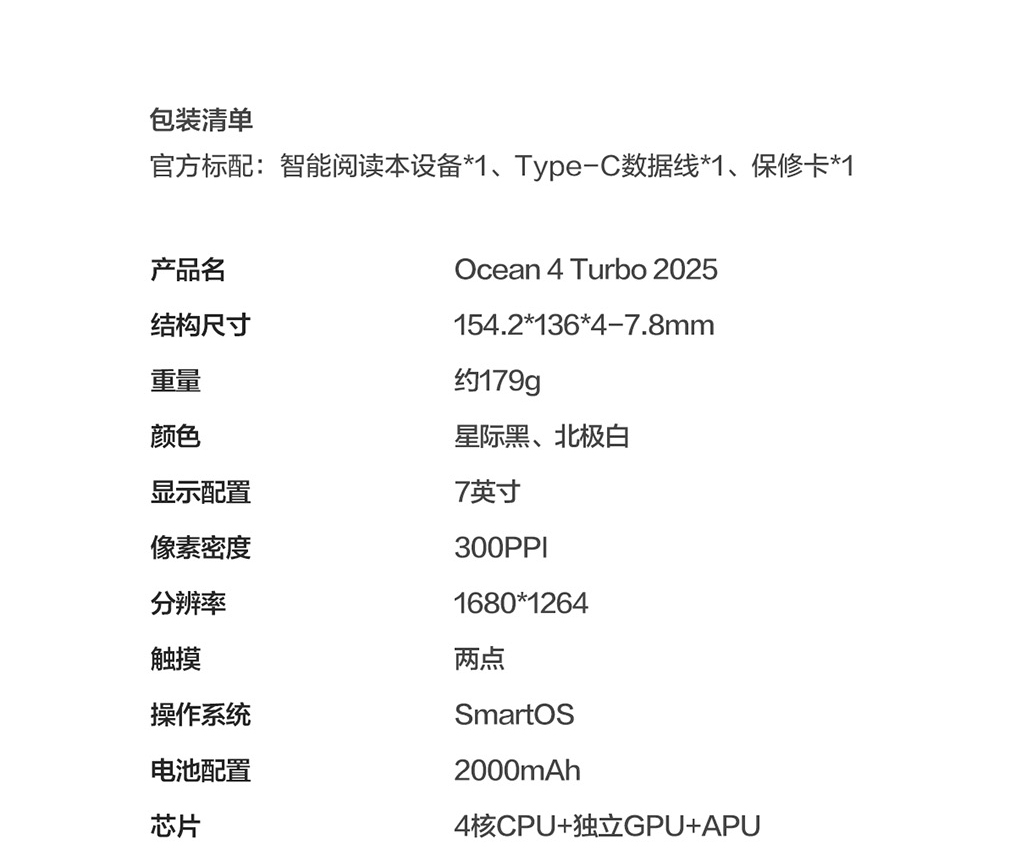 【新品】掌阅iReader Ocean 4 Turbo 2025 7英寸电纸书阅读器