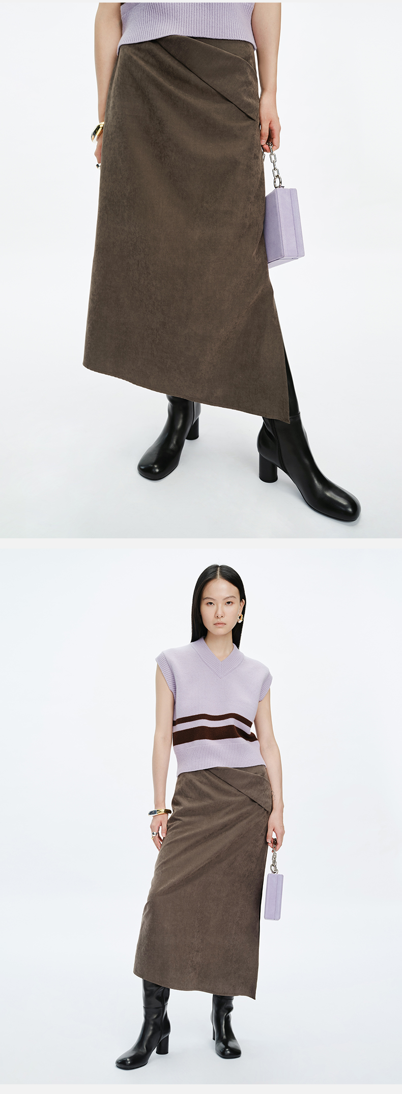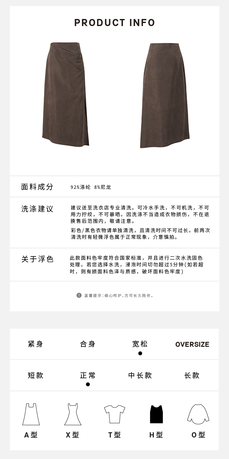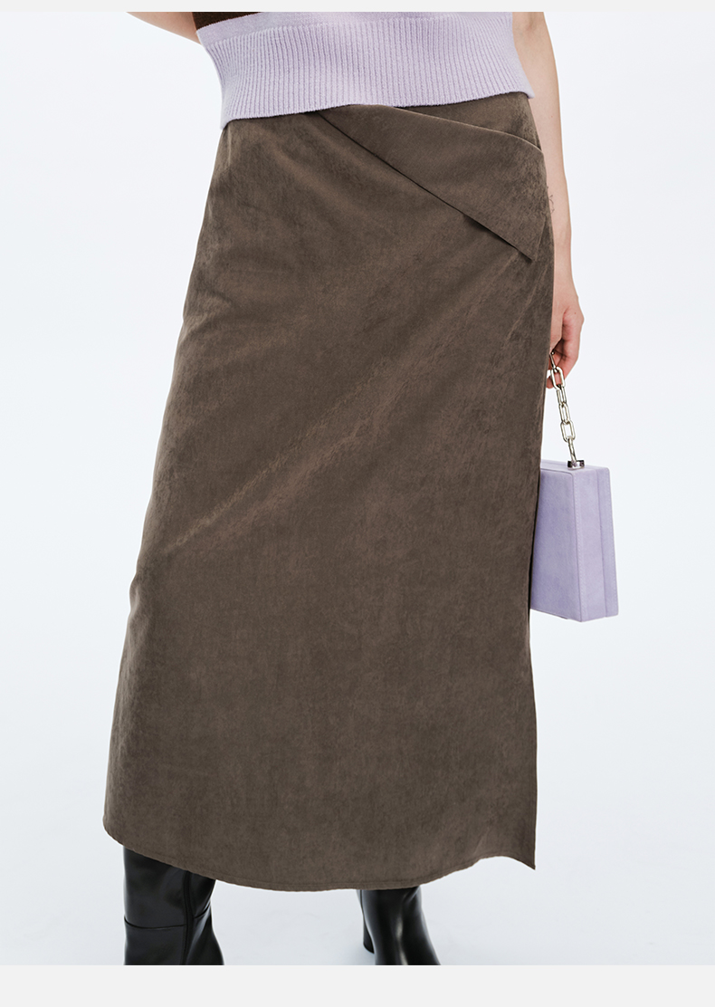 HIDEMI 摩卡色反毛麂绒不对称半身裙