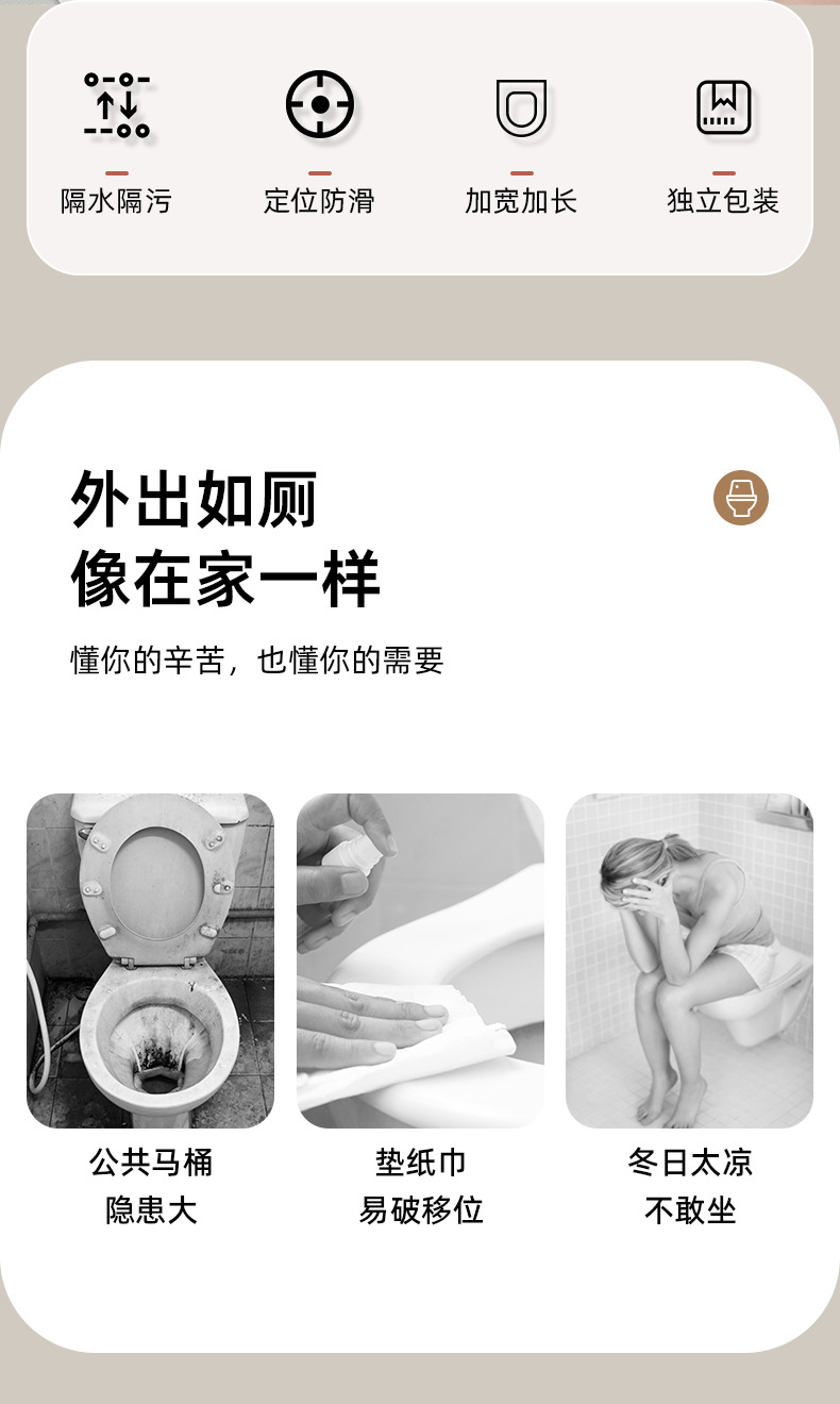 【外出如厕!像在家一样】酒店旅行户外防水加厚 一次性马桶垫 孕产妇粘贴隔脏坐便纸垫。ry