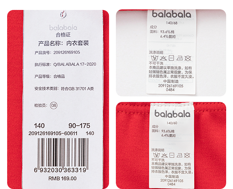 【balaOne】巴拉巴拉童装儿童内衣套装男童2025新款春季红色睡衣