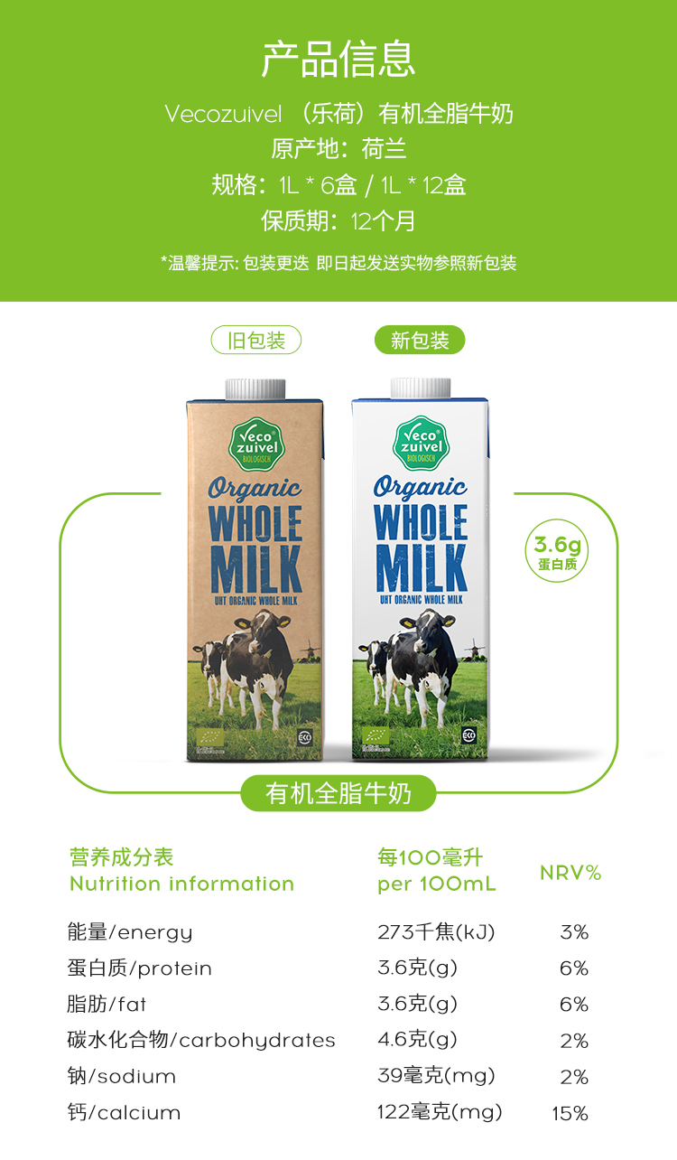 来自荷兰的有机牧场·配料只有生牛乳·口感香醇,滴滴浓郁·