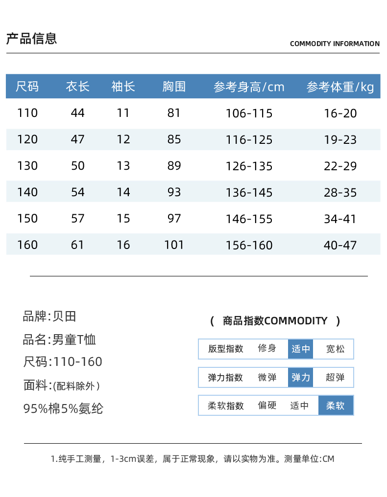 贝田男童短袖t恤2024新款 夏季薄款儿童装夏装半袖体恤酷帅打底衫