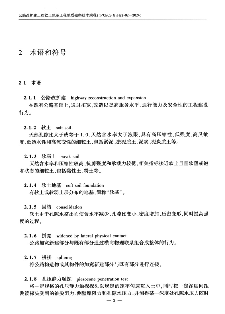 书名:公路改扩建工程软土地基工程地质勘察技术规程(T/CECS G:H22-02—2024)